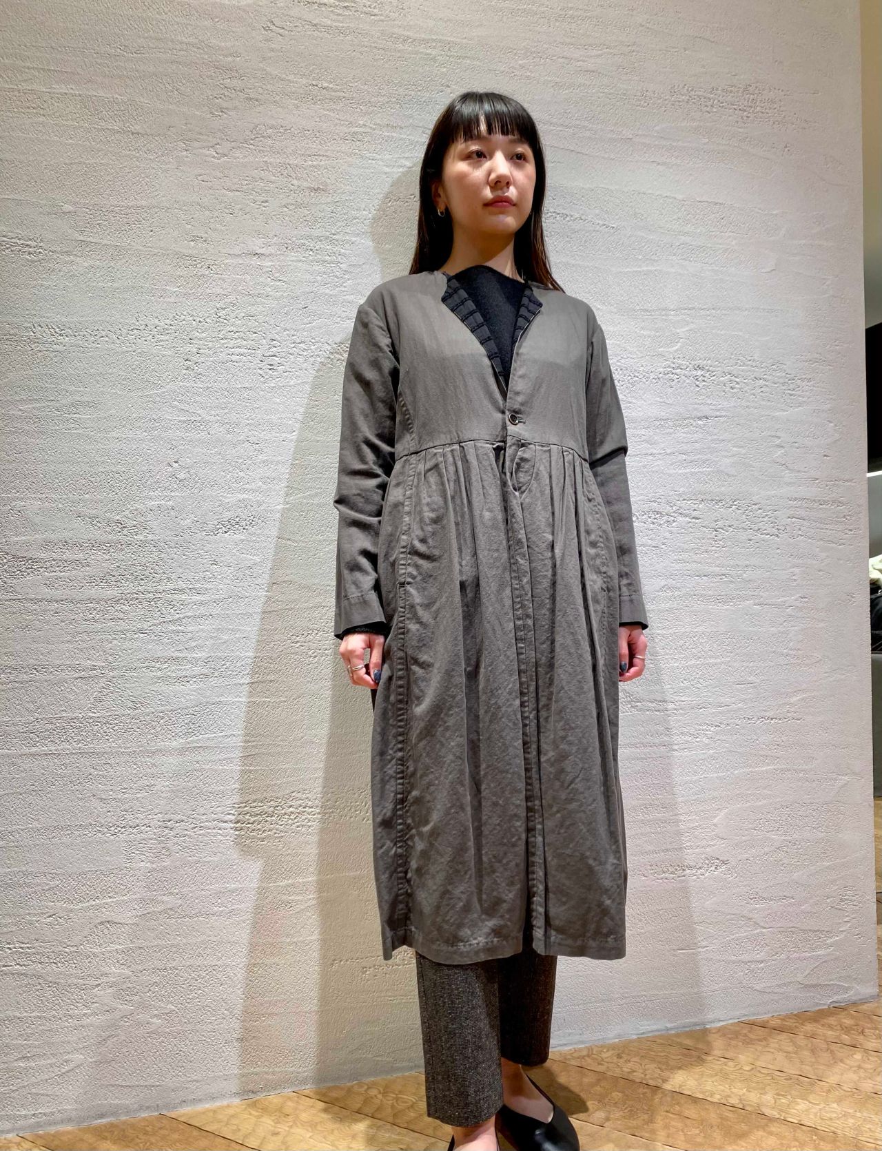 インがシンプルなので、デザイン性のある和紙ビエラコートを合わせてコーディネートのポイントにしました。