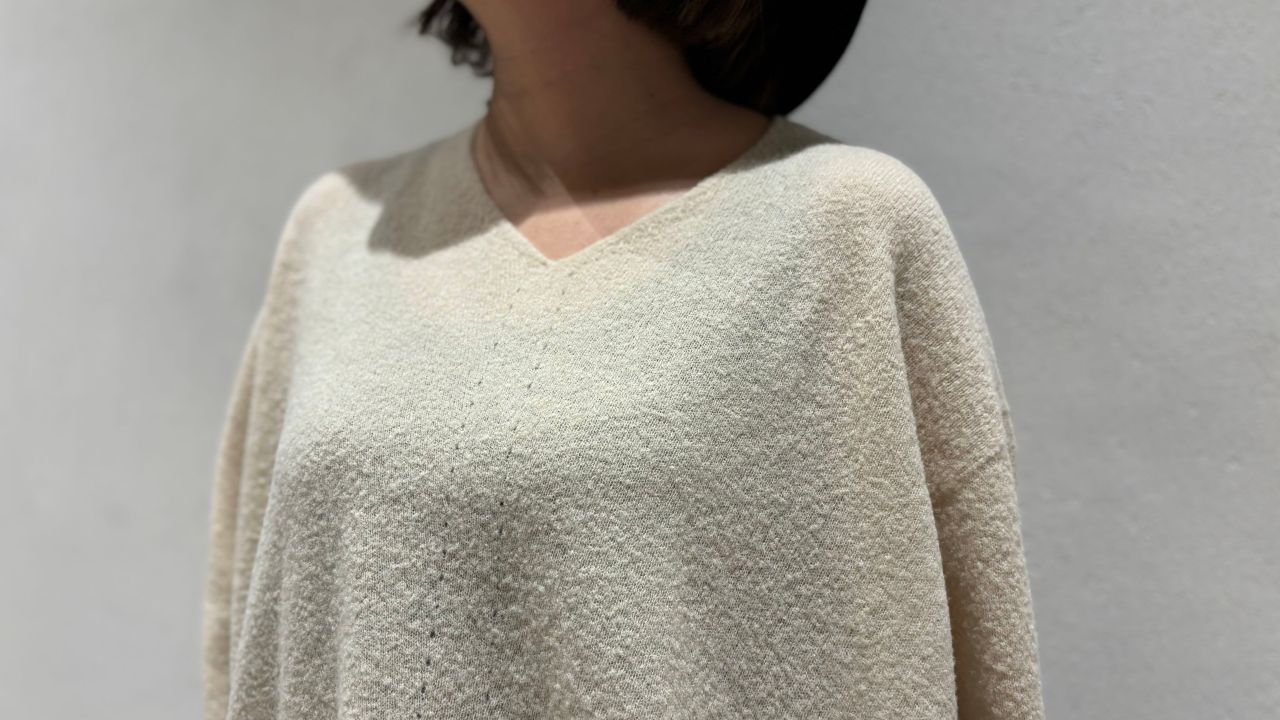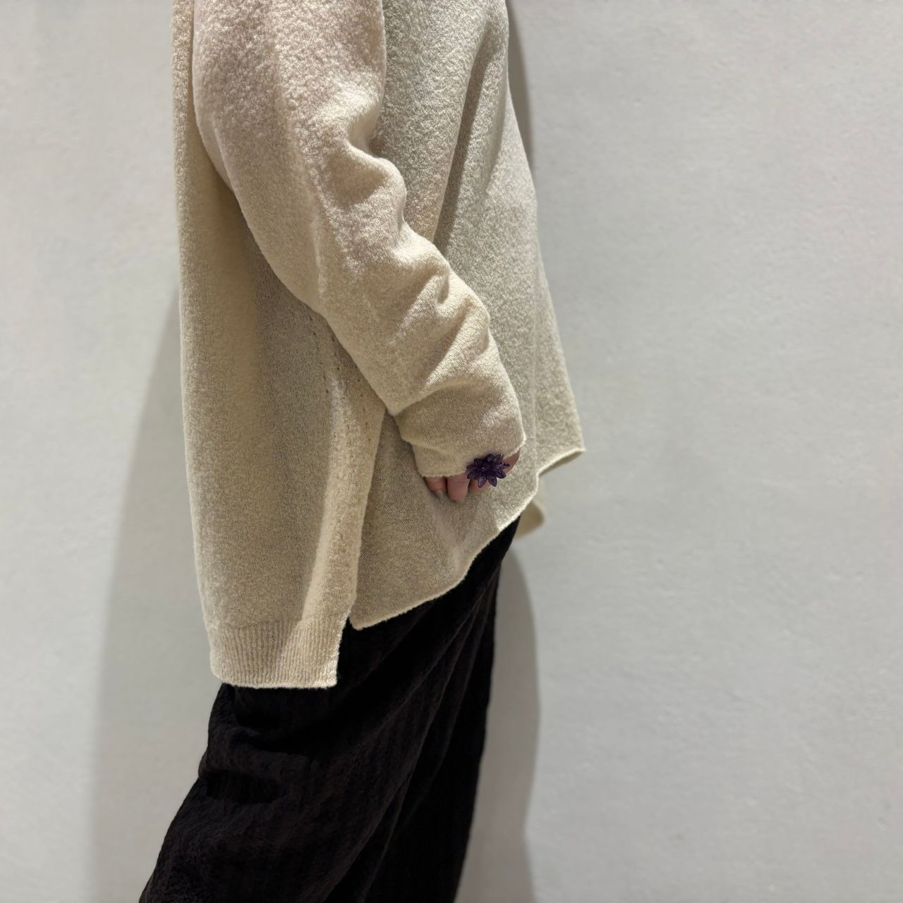 緩いシルエットと生地の軽さを活かして、ブラウスやハイネックとのレイヤードスタイルも楽しめます。
