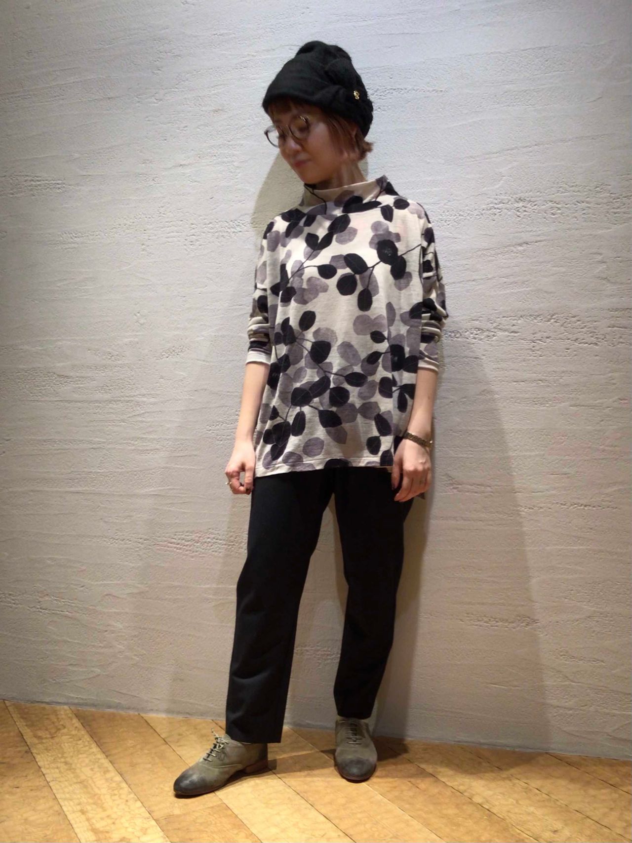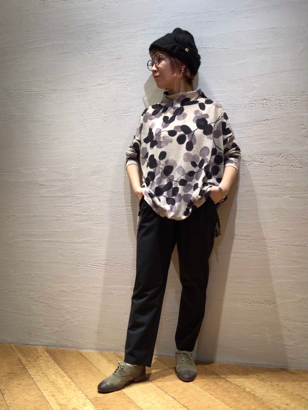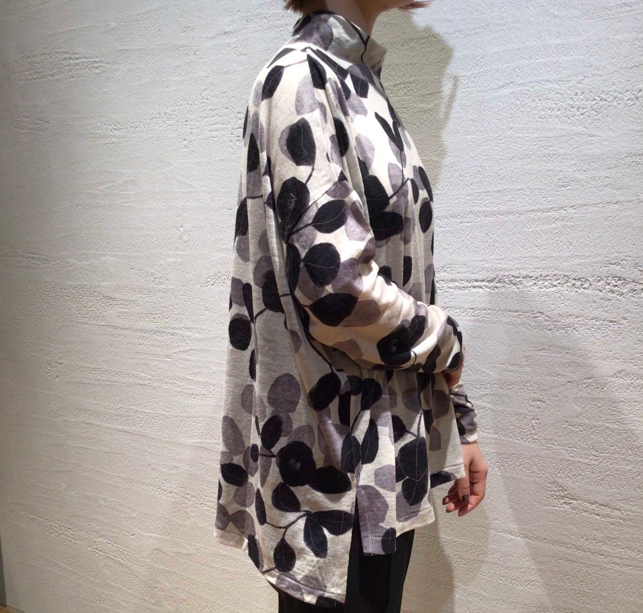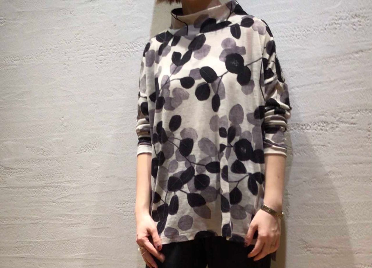 No.1381 未防縮ウール天竺椿プリントプルオーバー