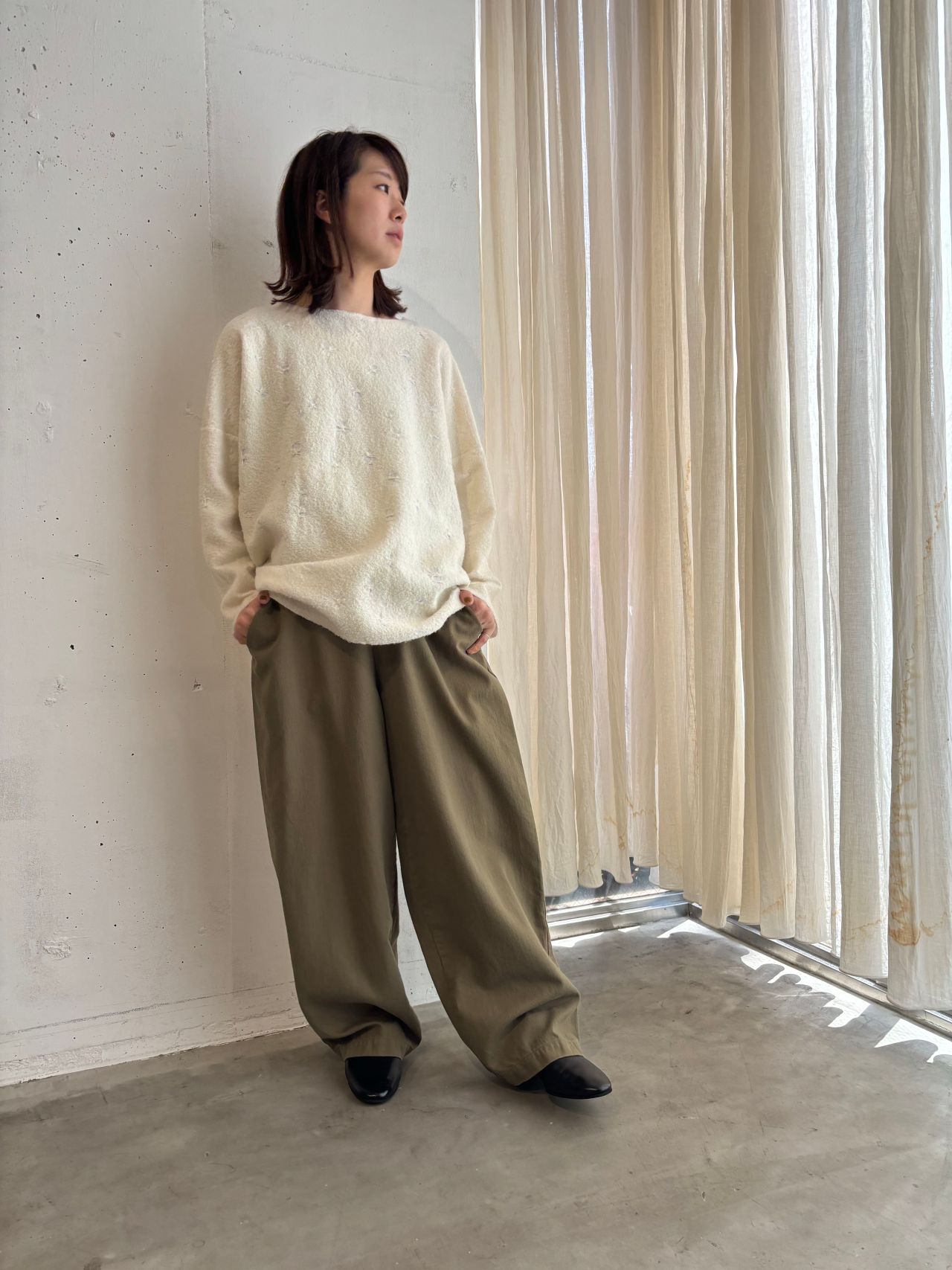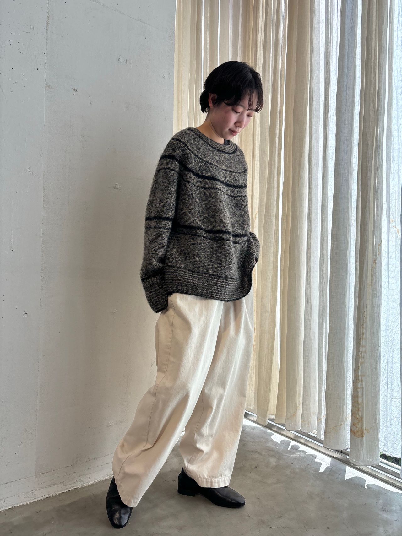 ジャガード編みのニット、ベビーアルパカのお素材、ボリューム感のあるワイドパンツや細身のヒップラインが綺麗なパンツなど。