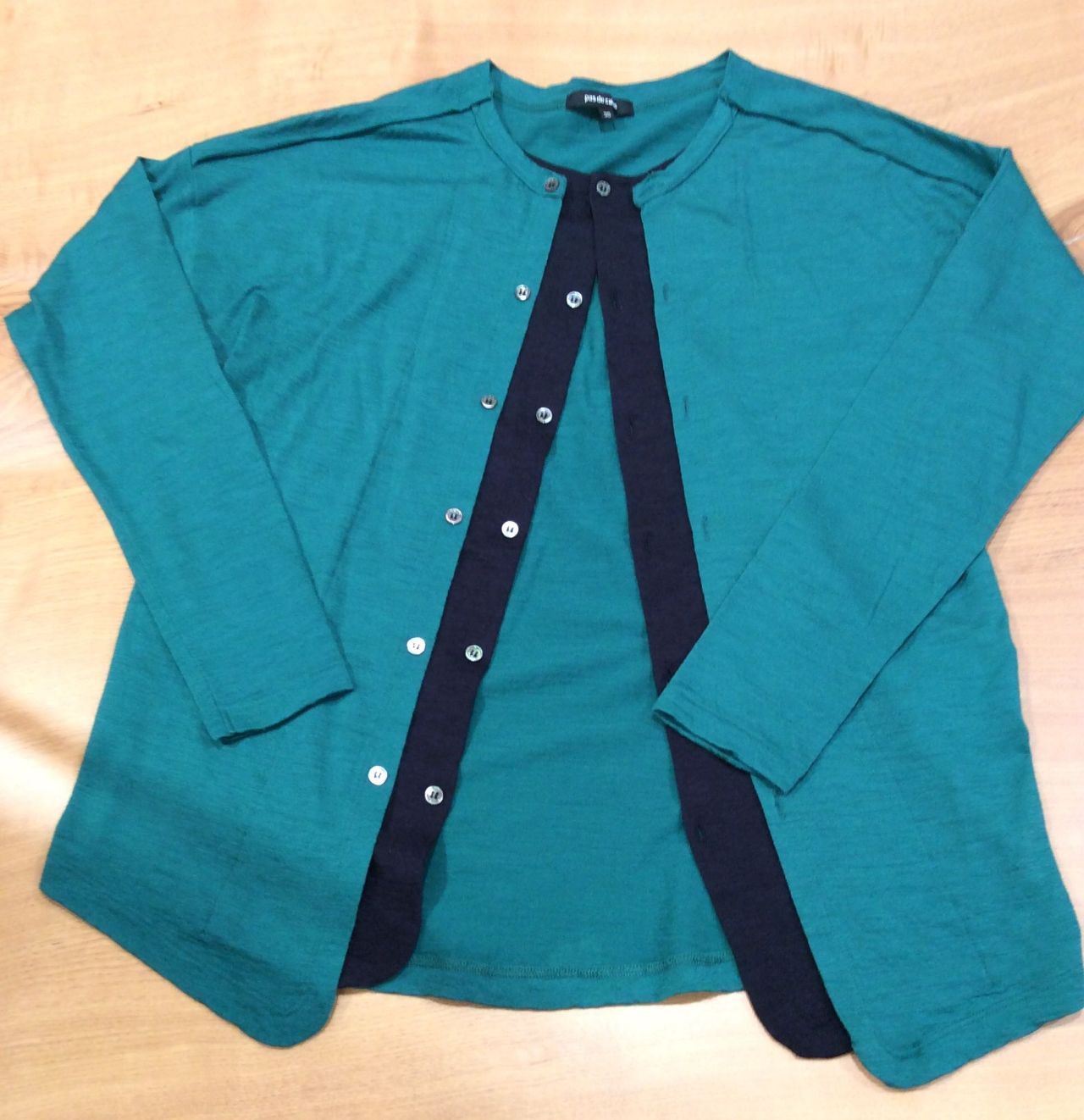 パドカレらしい前たてが2重のデザインのウールガーゼカーディガンを玉川店だけの綺麗なグリーンでお作りしました。いつもよりコンパクトなサイズ感に仕上げています。