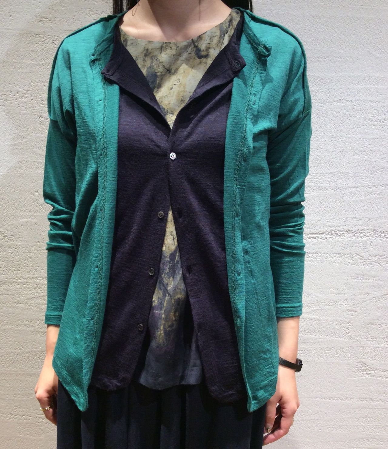 玉川別注ウールガーゼカーディガン(着用:グリーン)