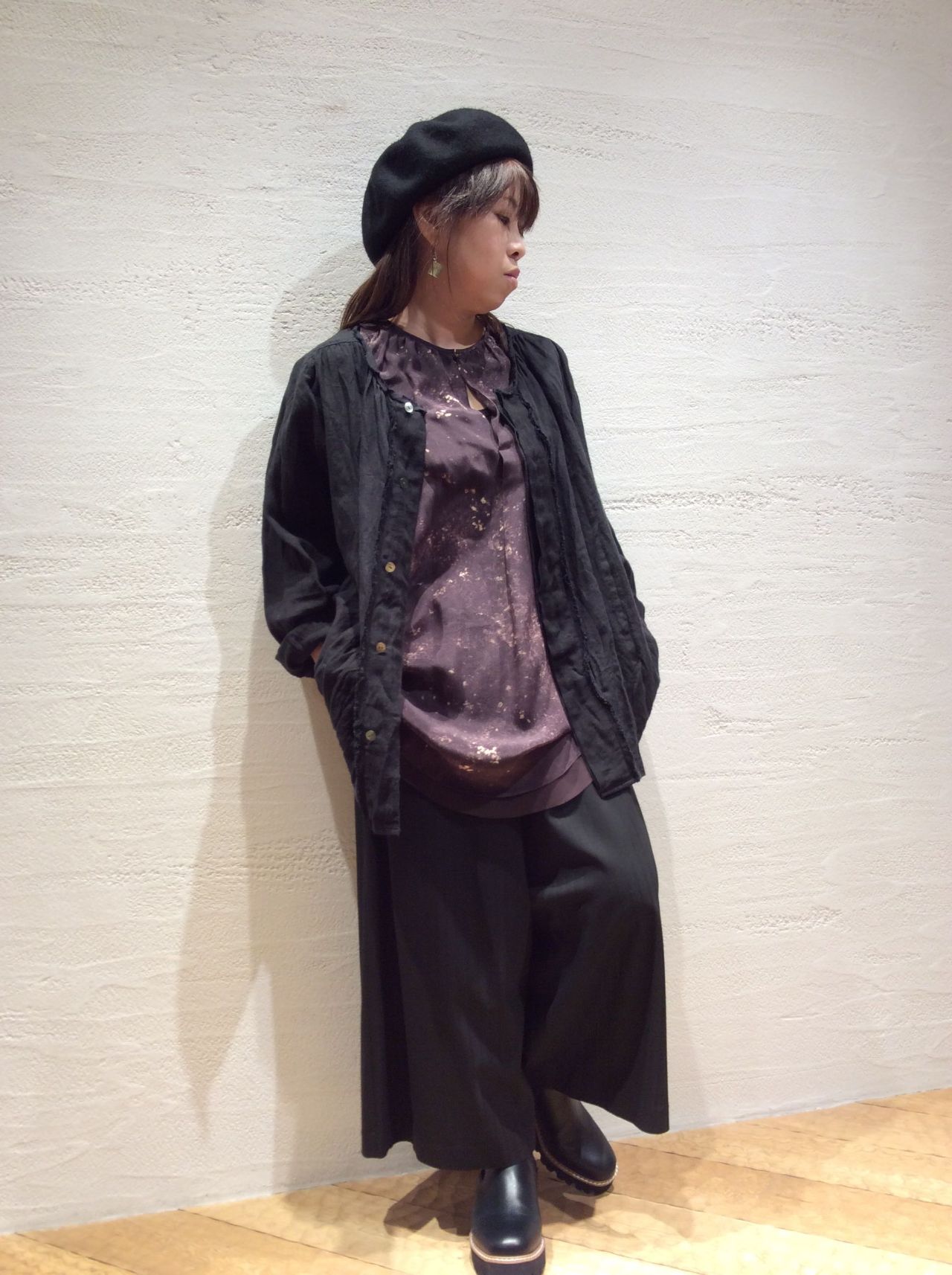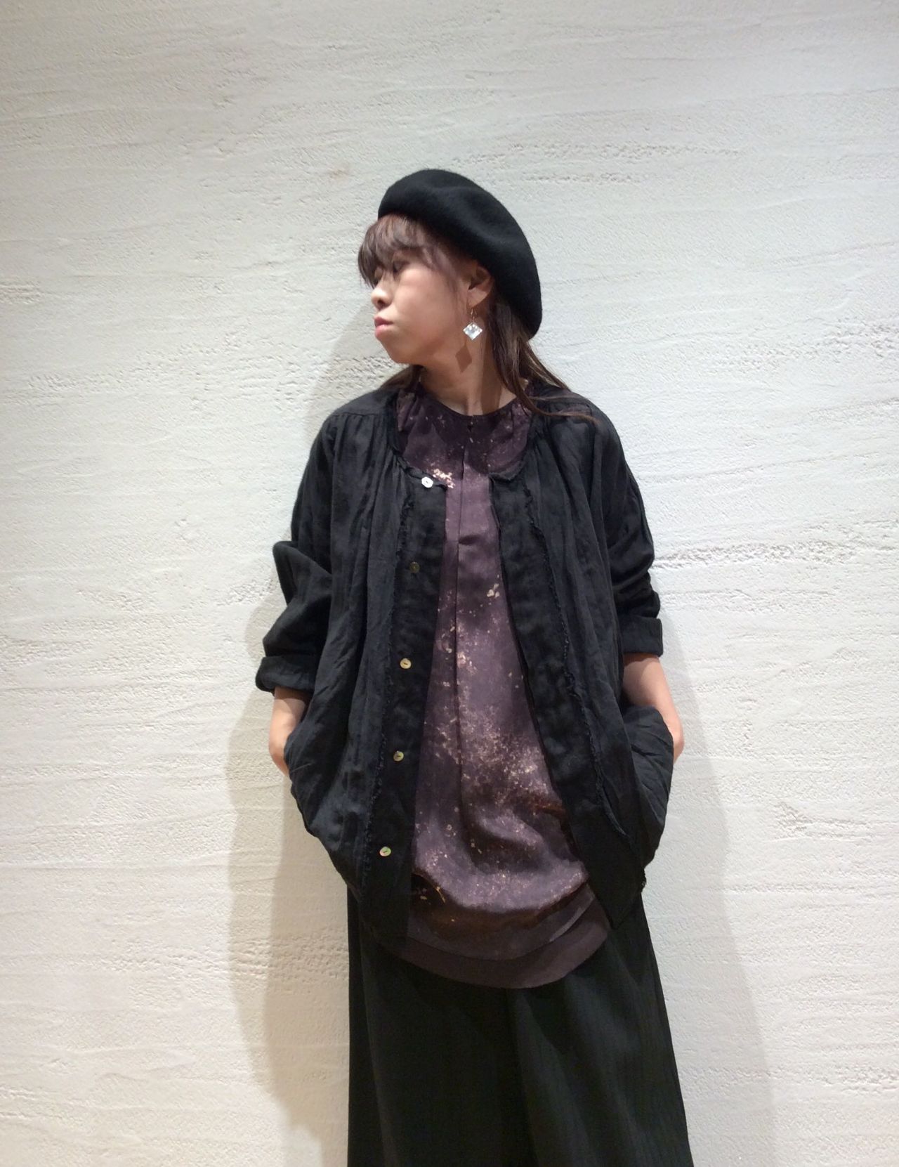 リネンワッシャー&リネンボイルガーゼブラウス (着用 : ブラック )