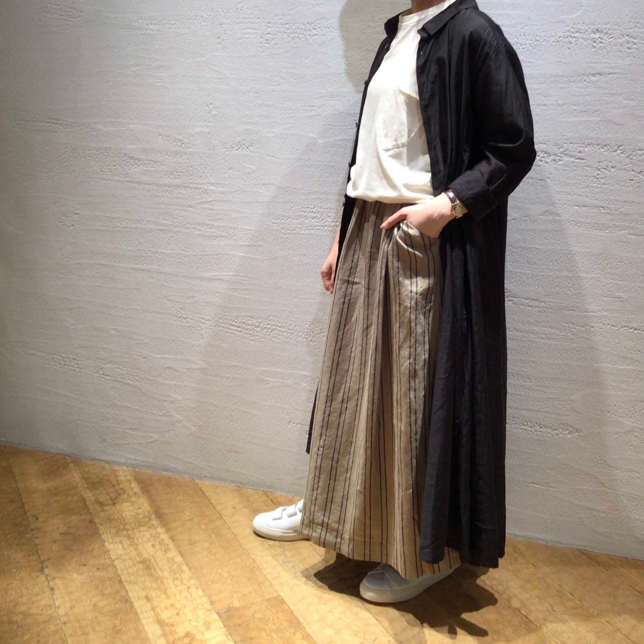 今回は秋まで着まわしの効くオススメコーディネートをご紹介いたします。