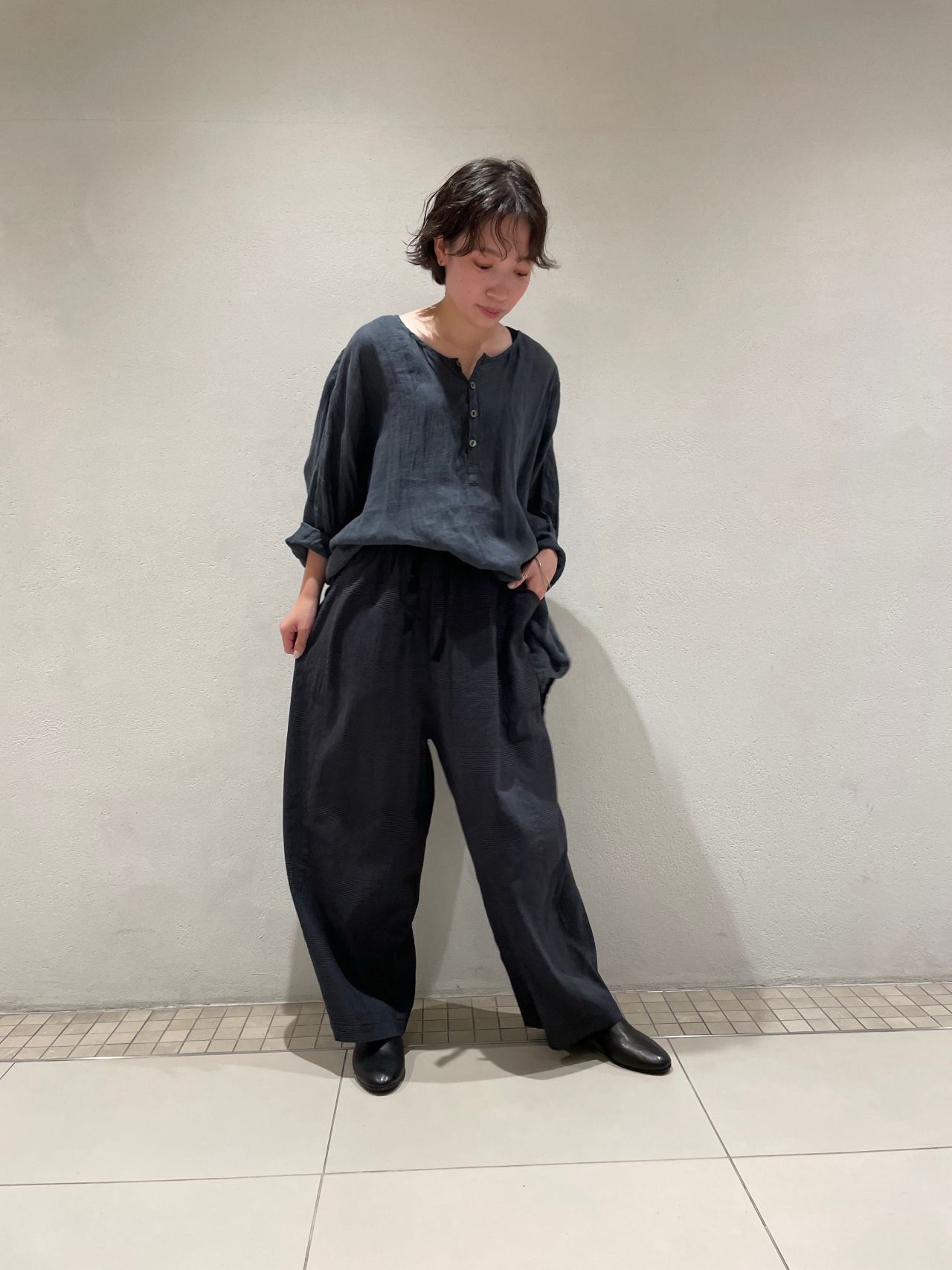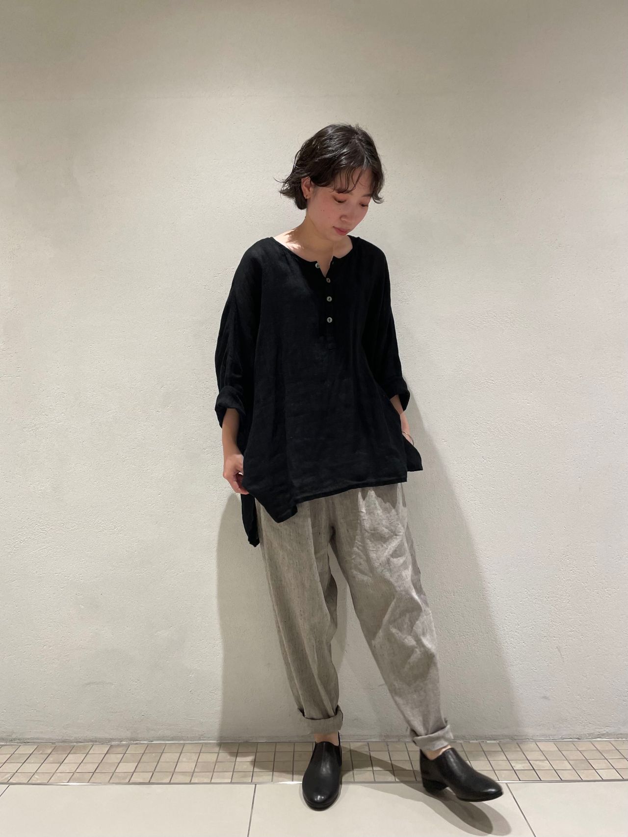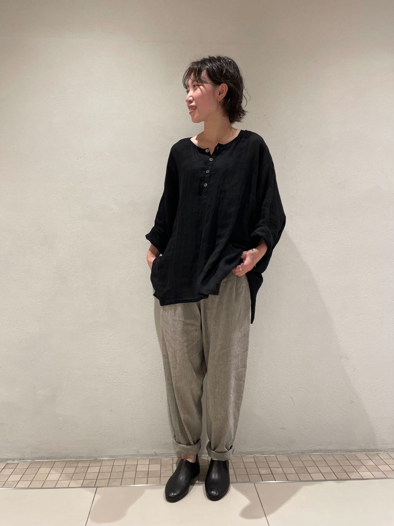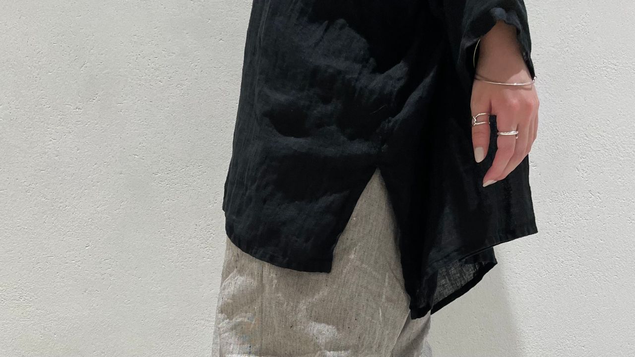 リネンのシャリ感を残しつつ、エアリーで軽やかな着心地です。