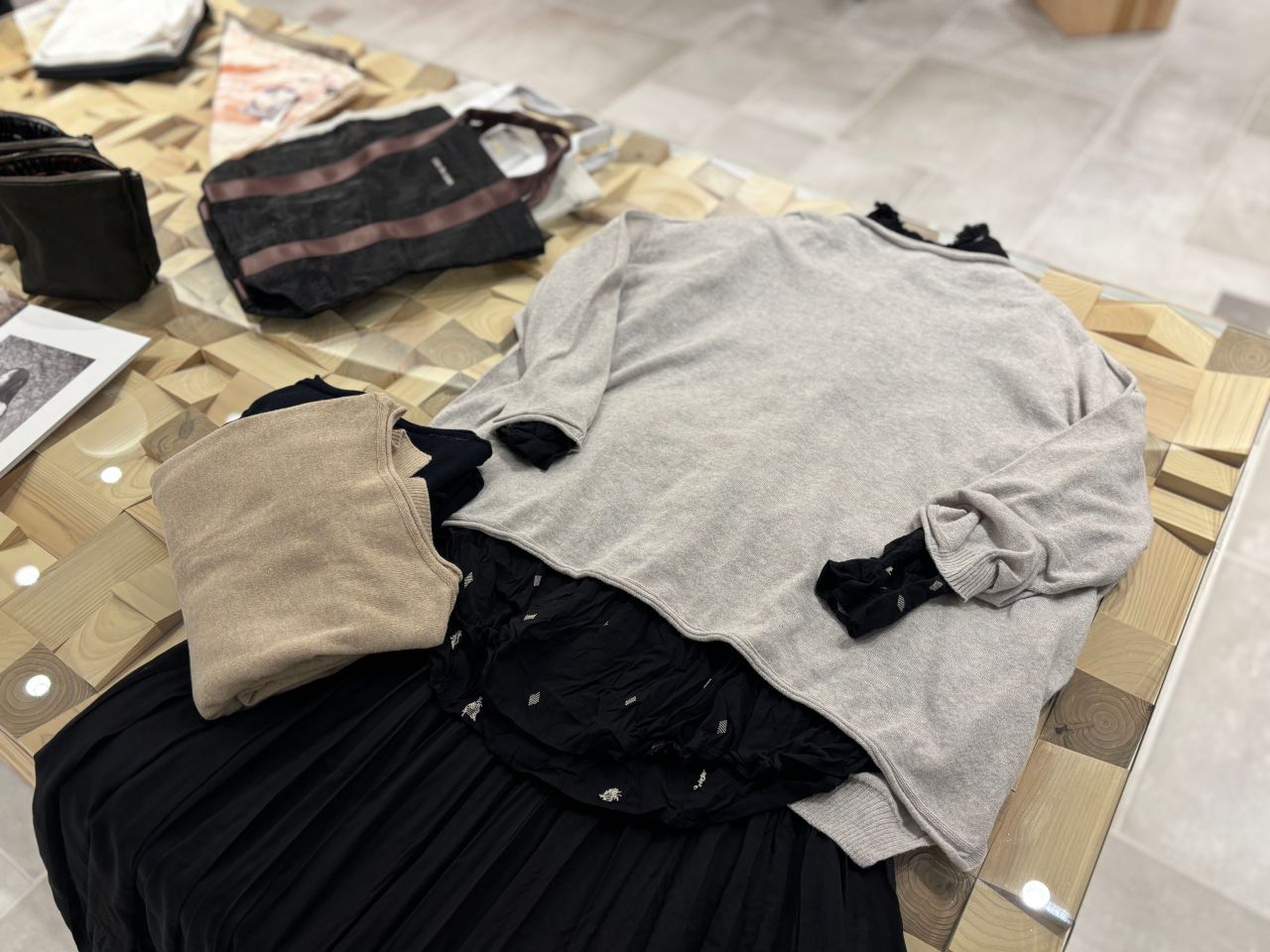 ラミーの光沢が綺麗なバンドルダイのブラウスや、コットンリネンの軽やかなニットなど、春を彩るアイテムが揃いました。