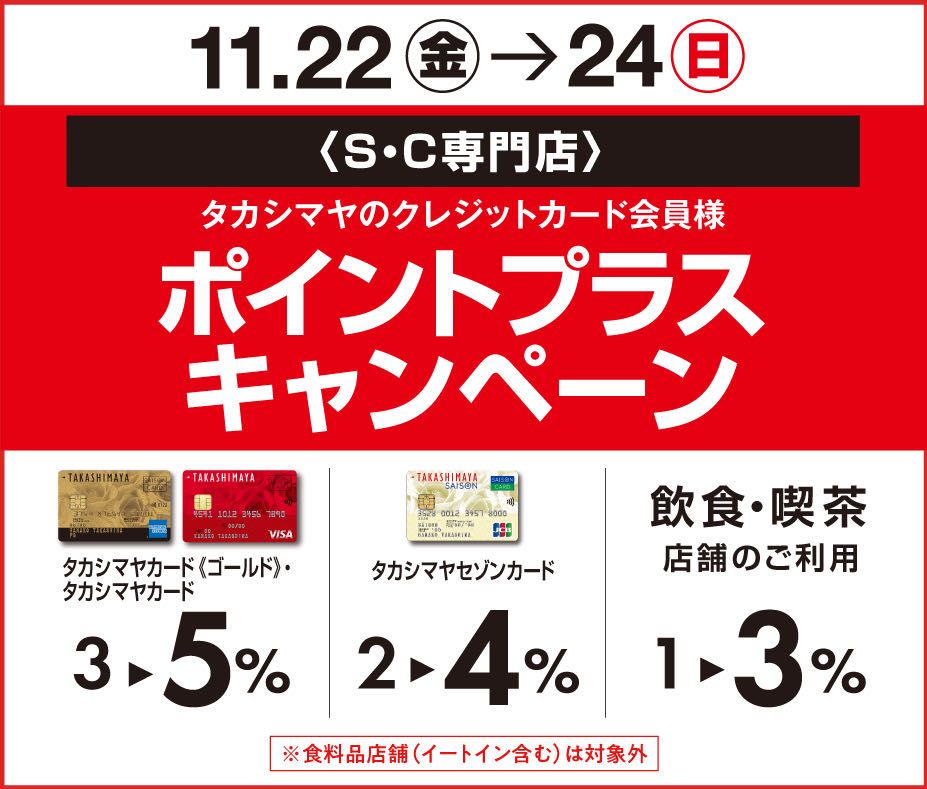 上記の3日間限定で、タカシマヤのクレジットカードによるご利用のお客様に、通常ポイントに加え2%ポイントをプラスいたします。
