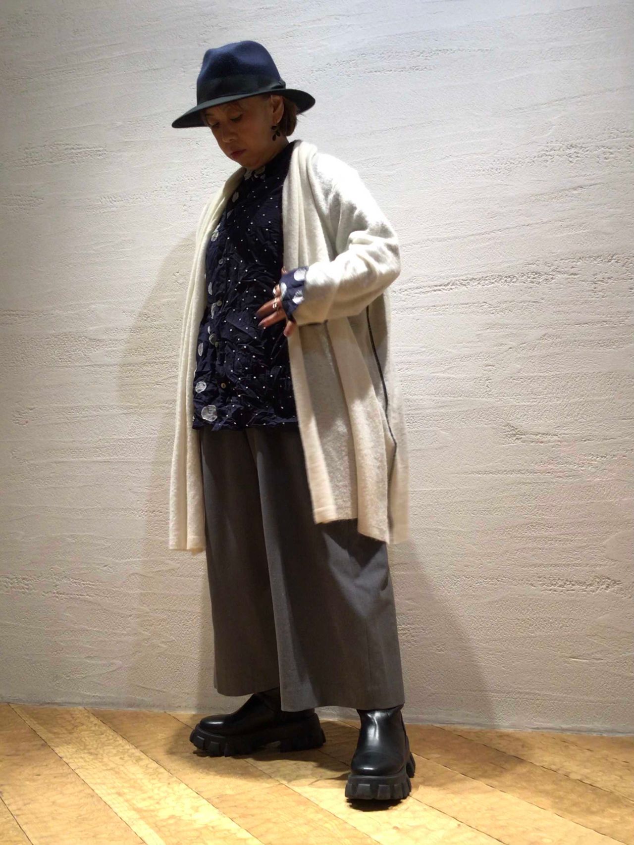 col.ホワイト/ネイビー(着用)