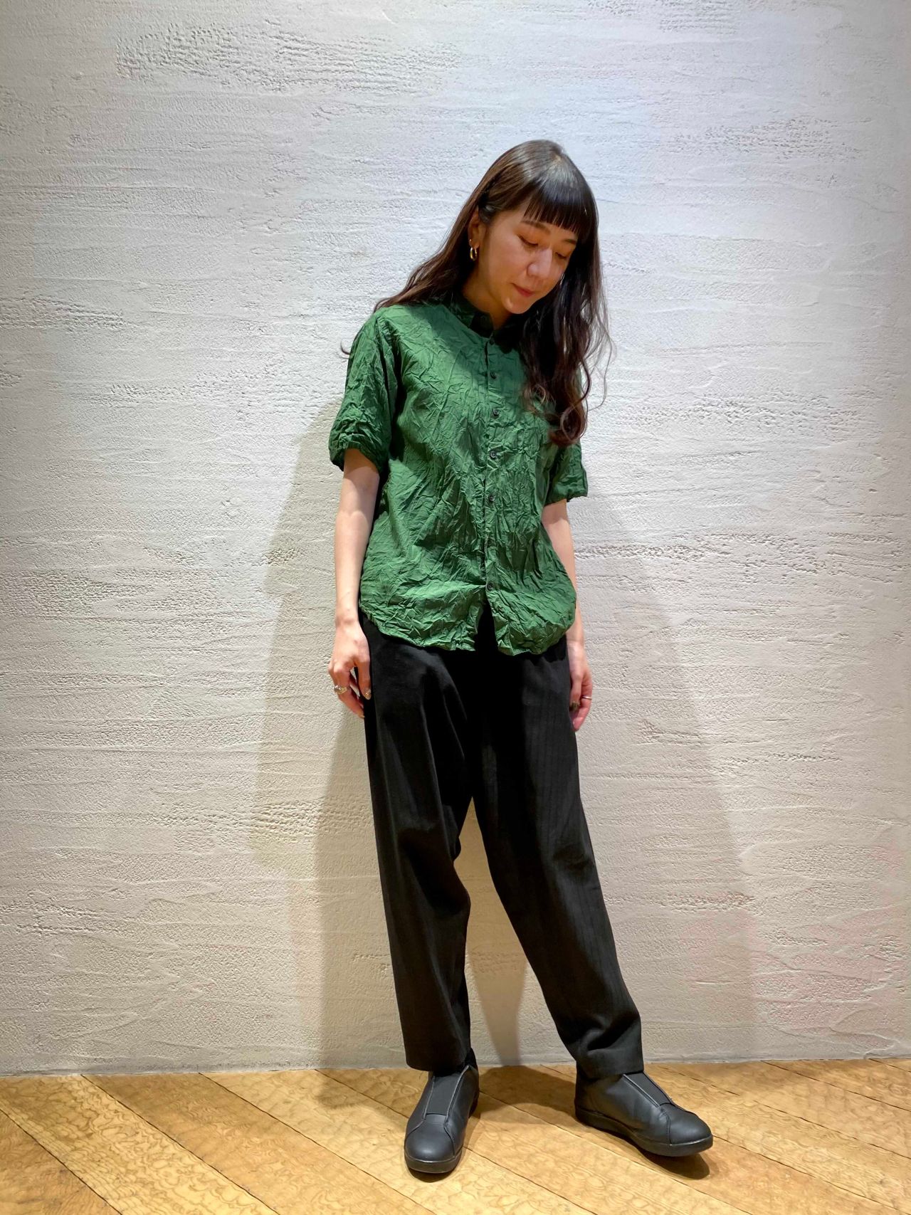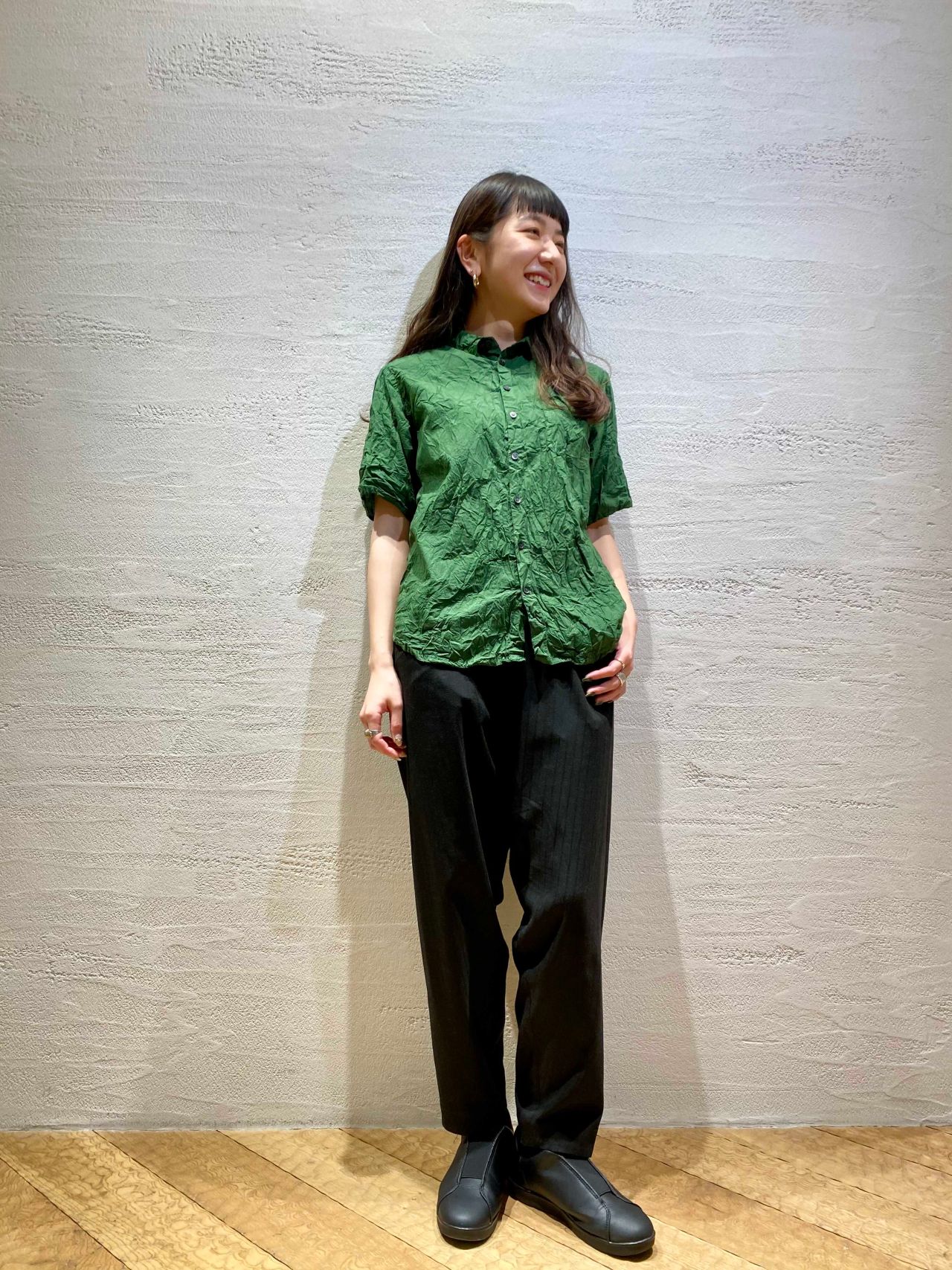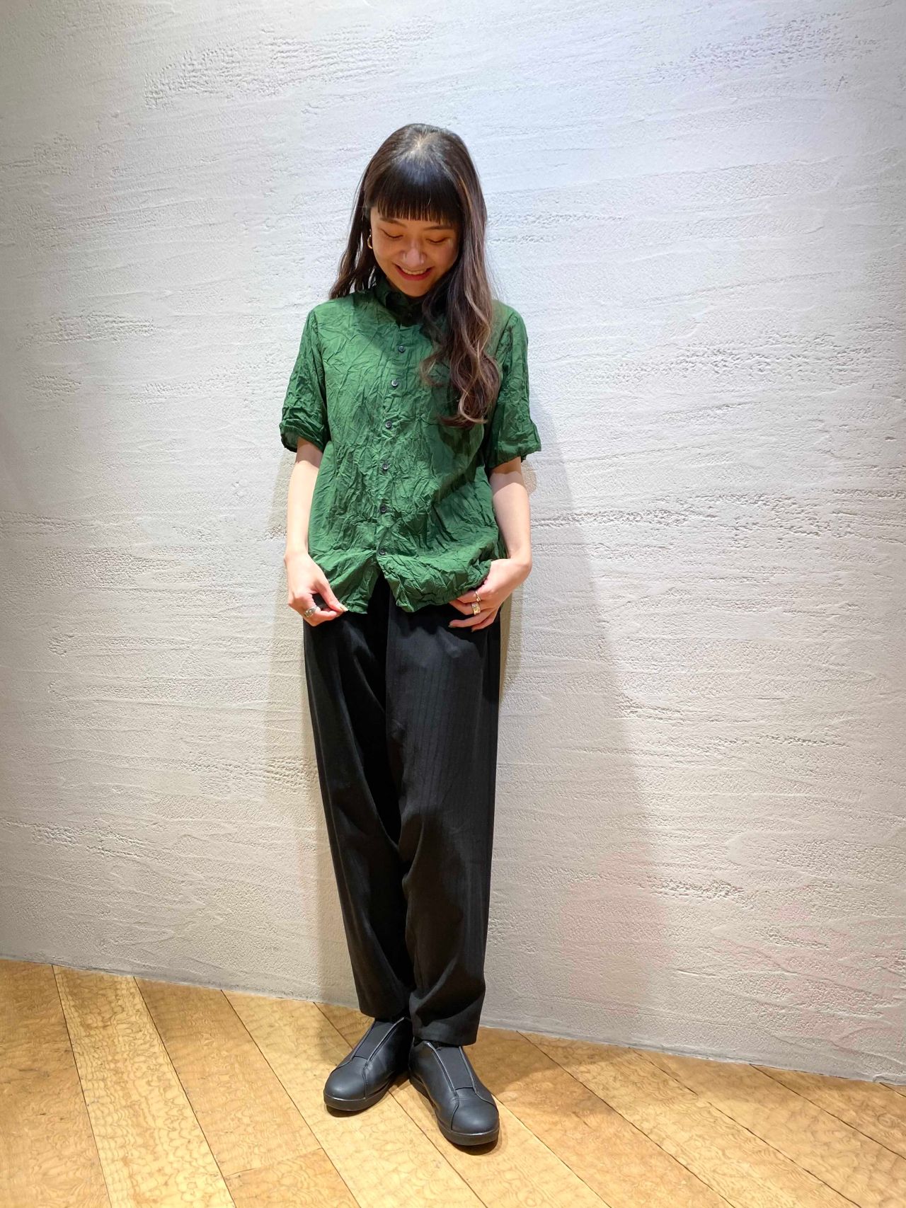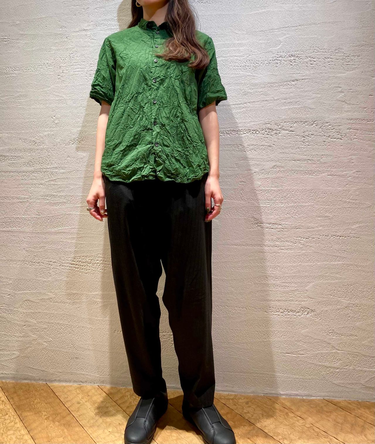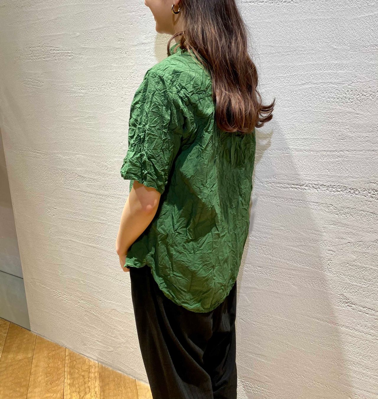 本日は、グリーンウェーブを感じる綺麗なグリーンが目を惹くブラウスをご紹介します。