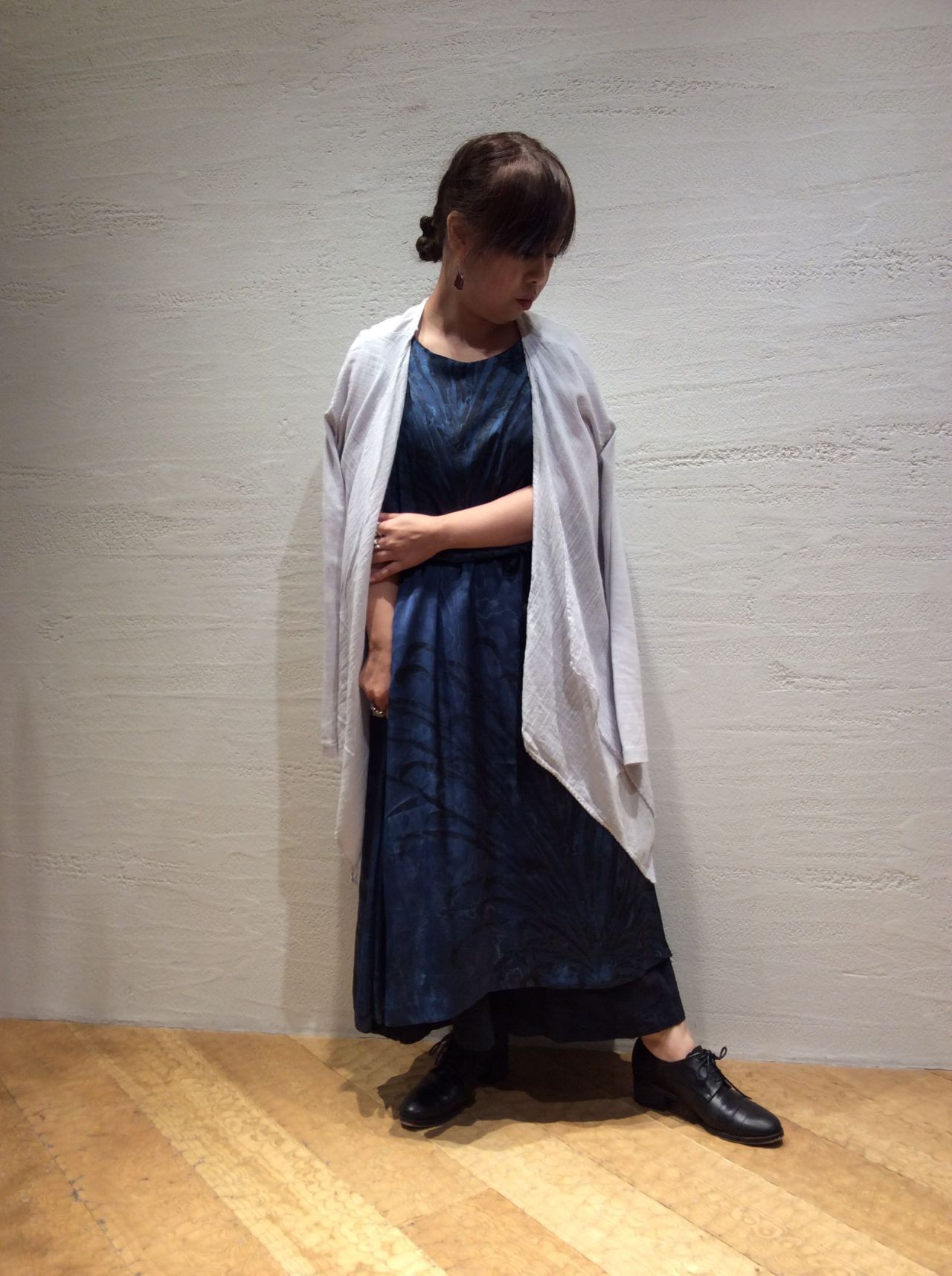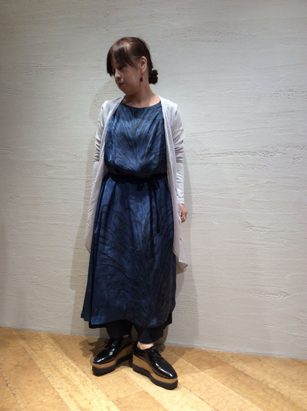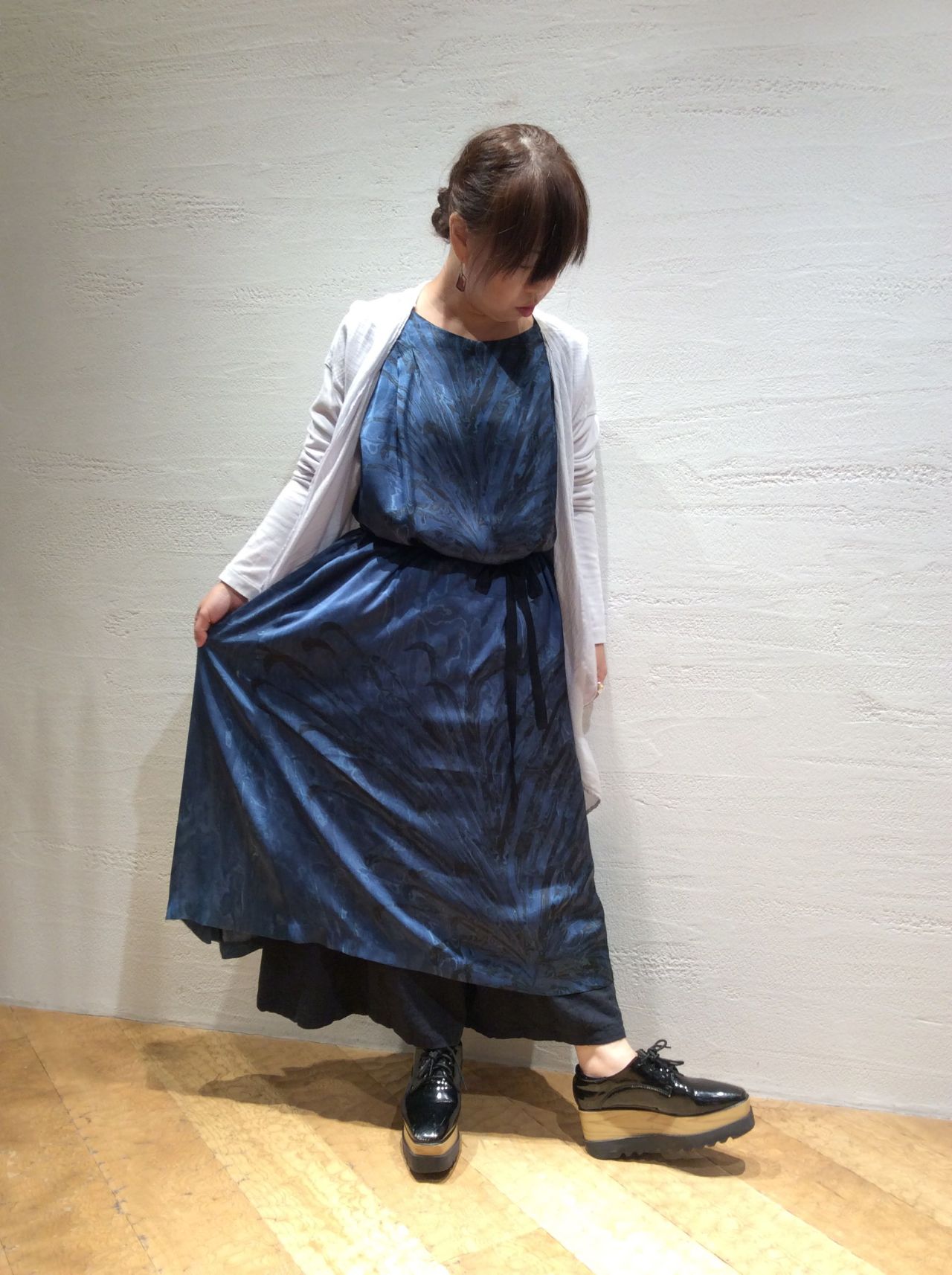 マーブルプリントワンピース(着用:ネイビー)