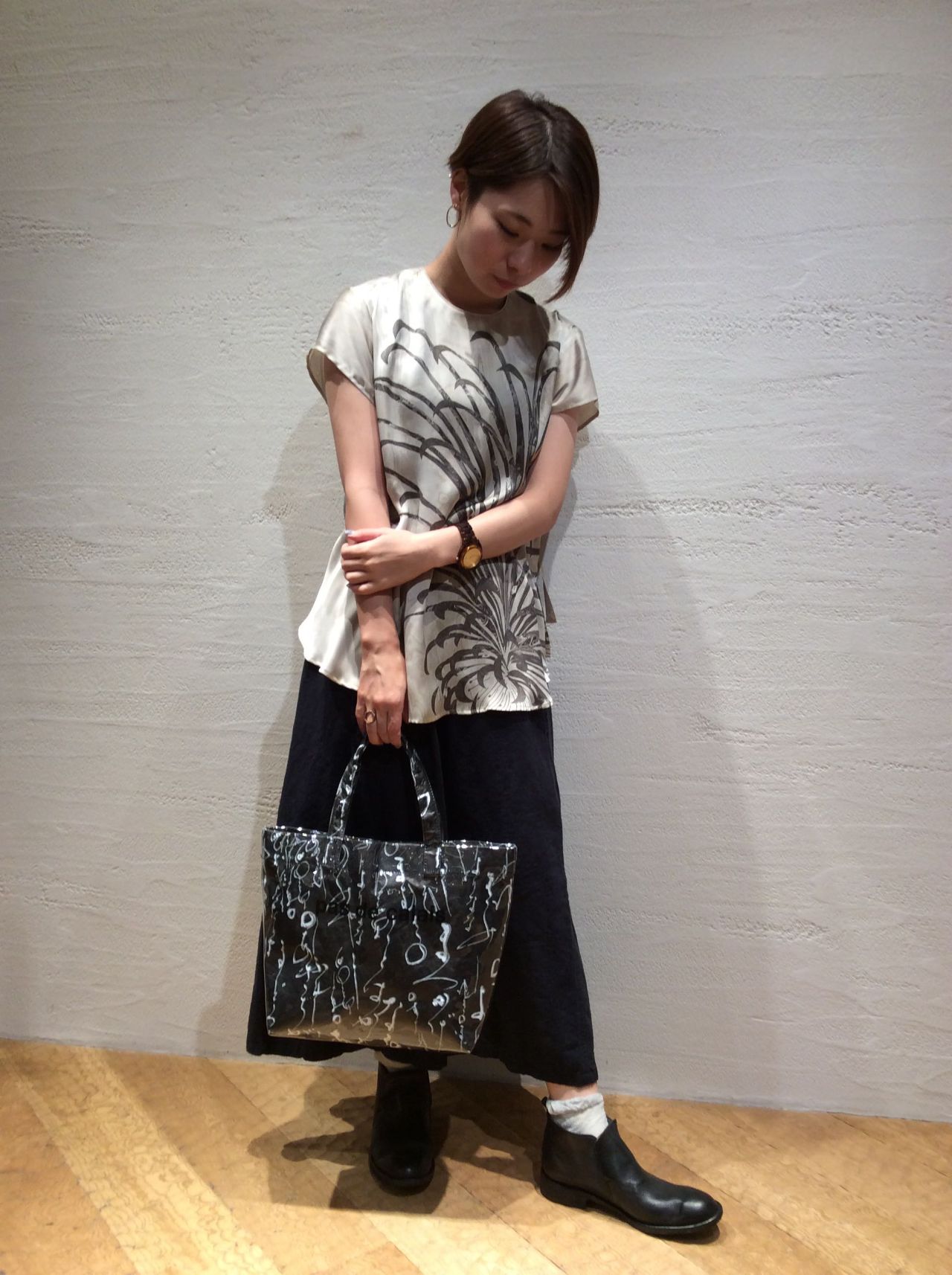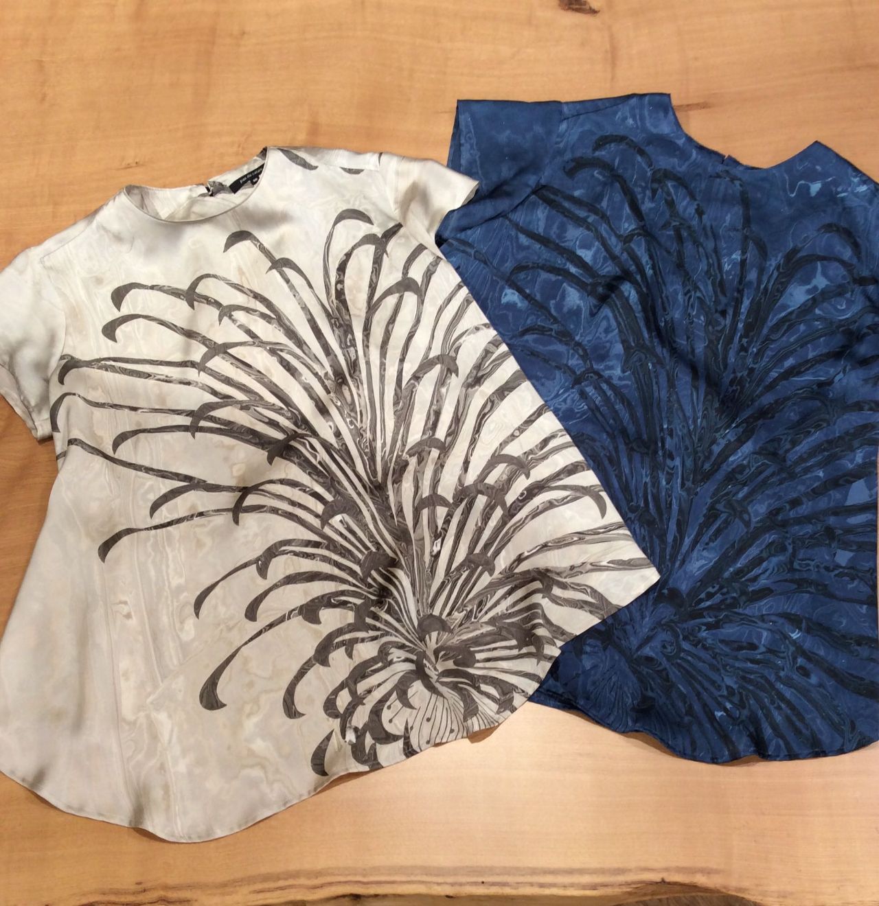 本日は【マーブルプリント】を使ったブラウスとワンピースをご紹介致します。