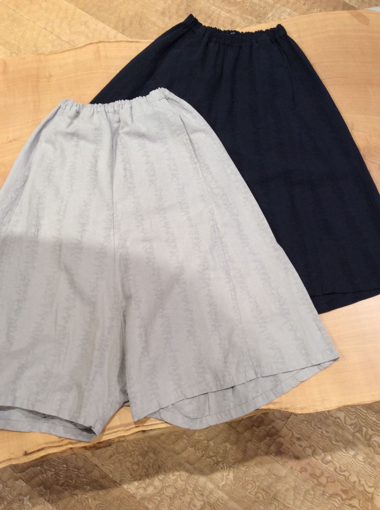 麻/綿ジャガード素材を使用した総ゴムサルエルパンツ。