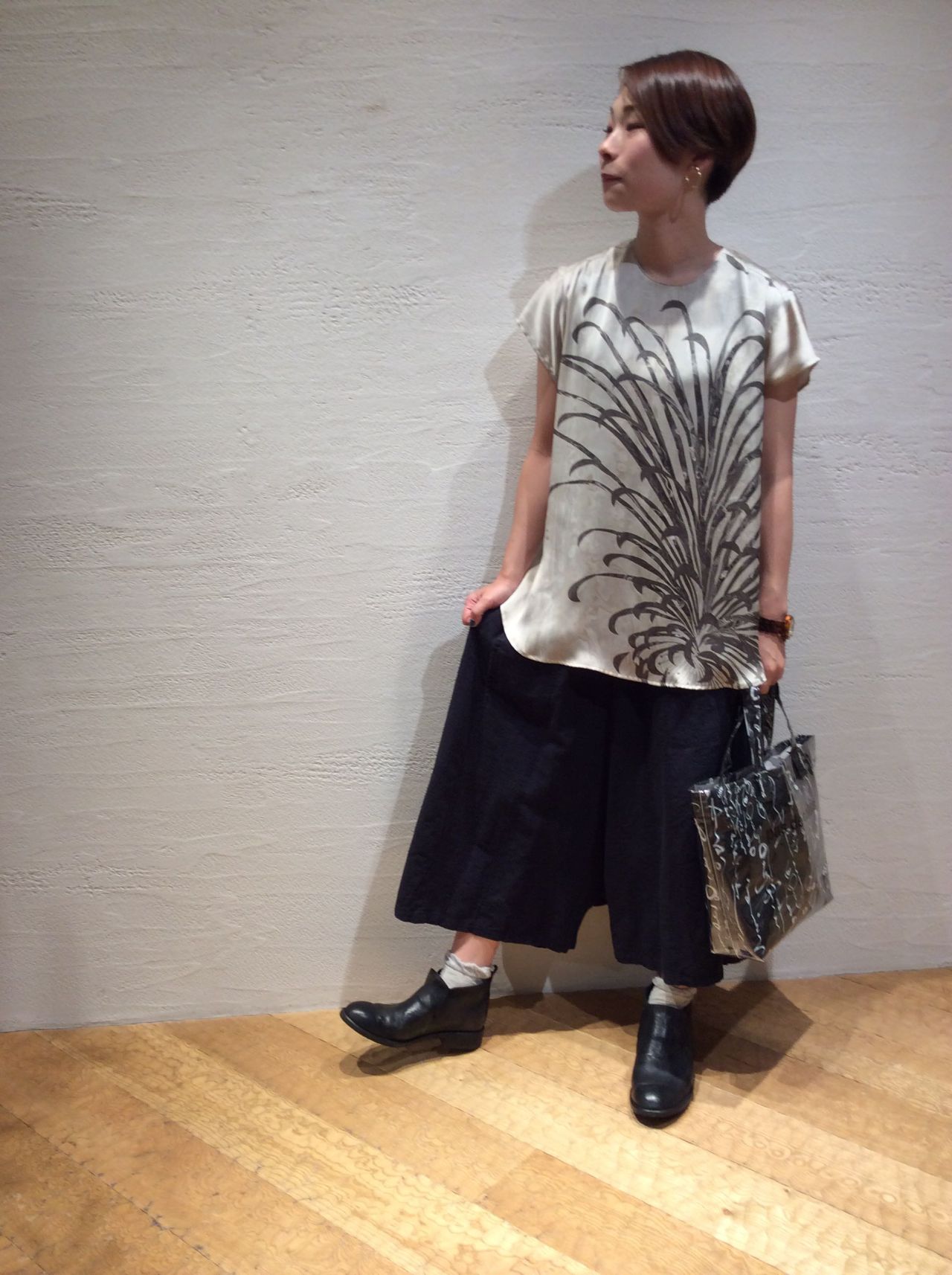 華やかな大輪の花が一つ入ったコンパクトなショート・スリーブブラウス。