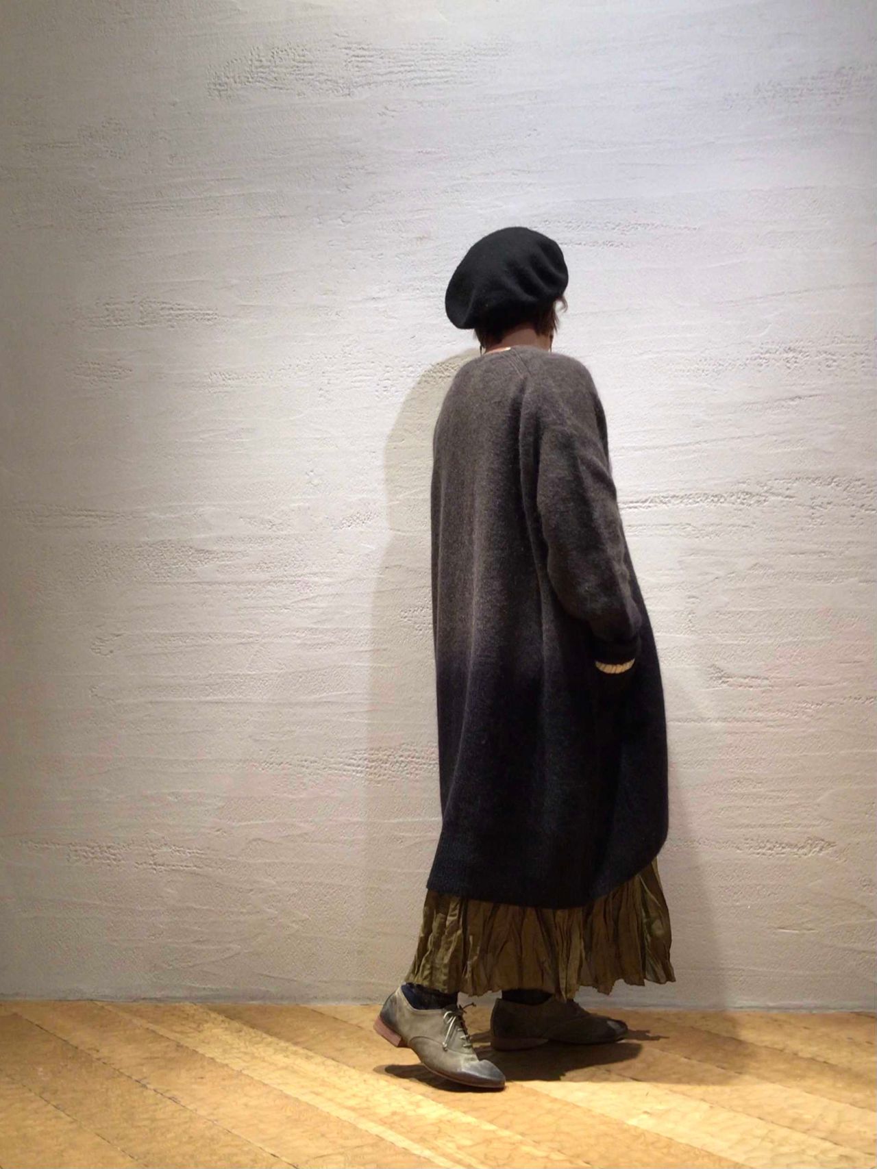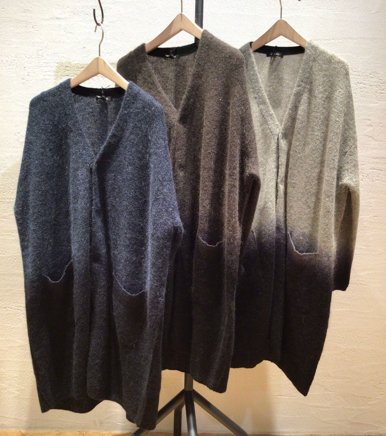 軽くて、包まれてるような温かさのカーディガン。大胆な段染めがどんなスタイリングでもポイントになります。