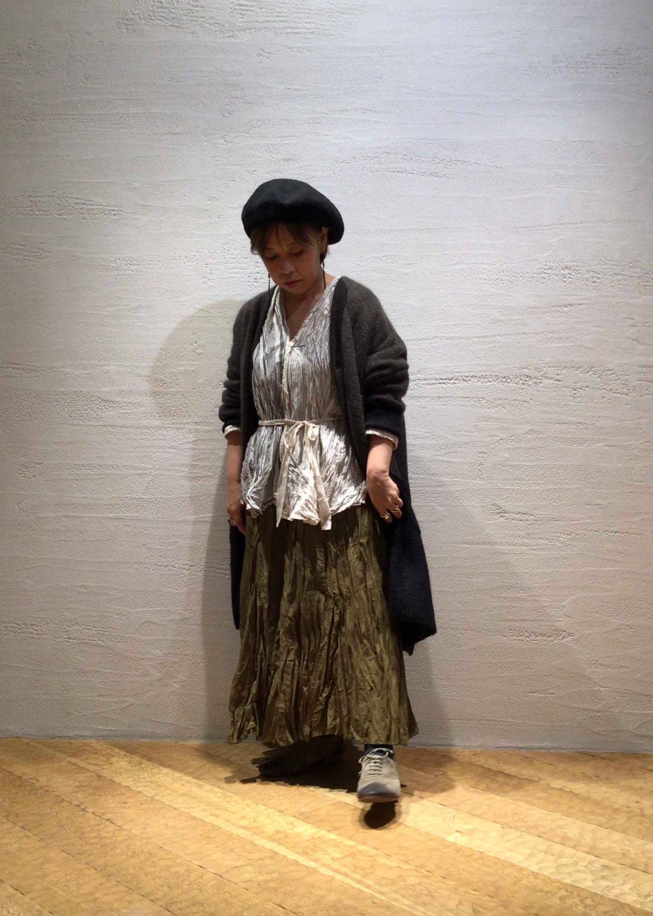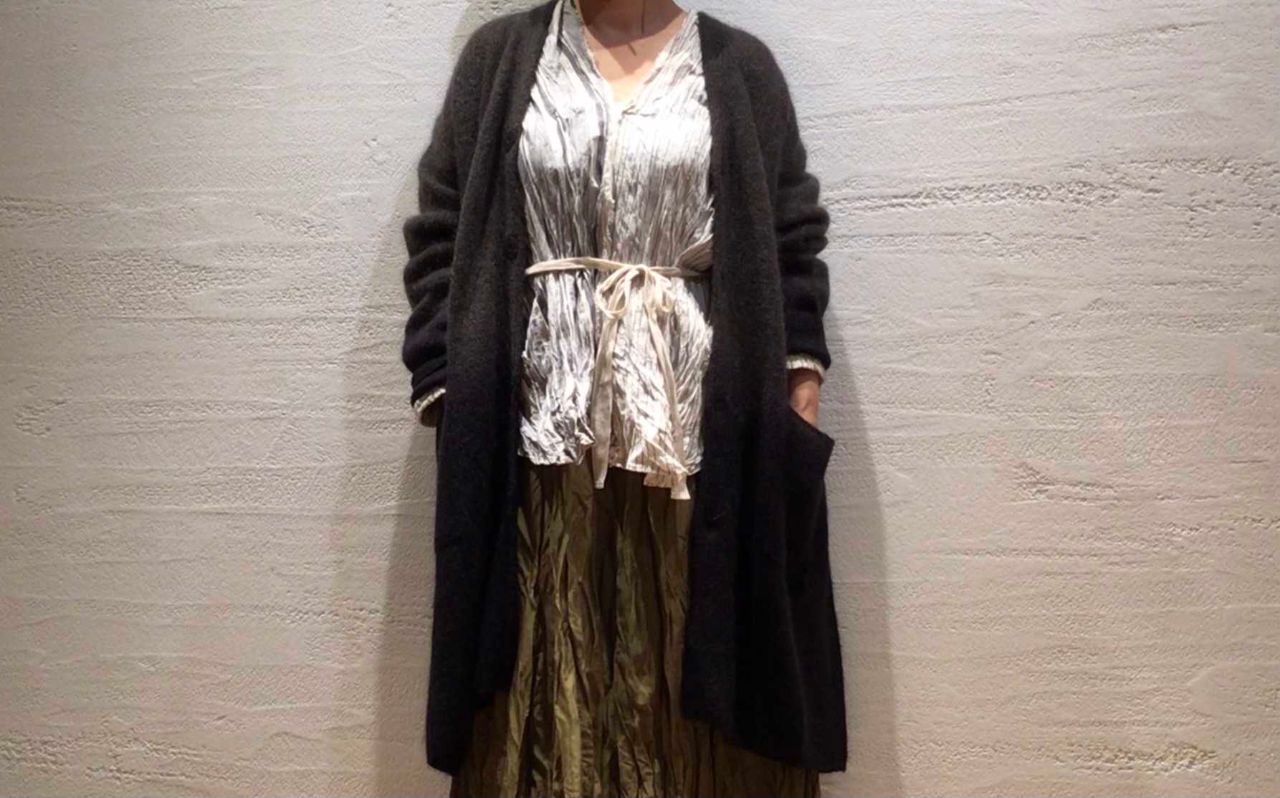 今回も新作アイテムの中からお問い合わせの多かった段染めニットカーディガンのスタイリングをご紹介。