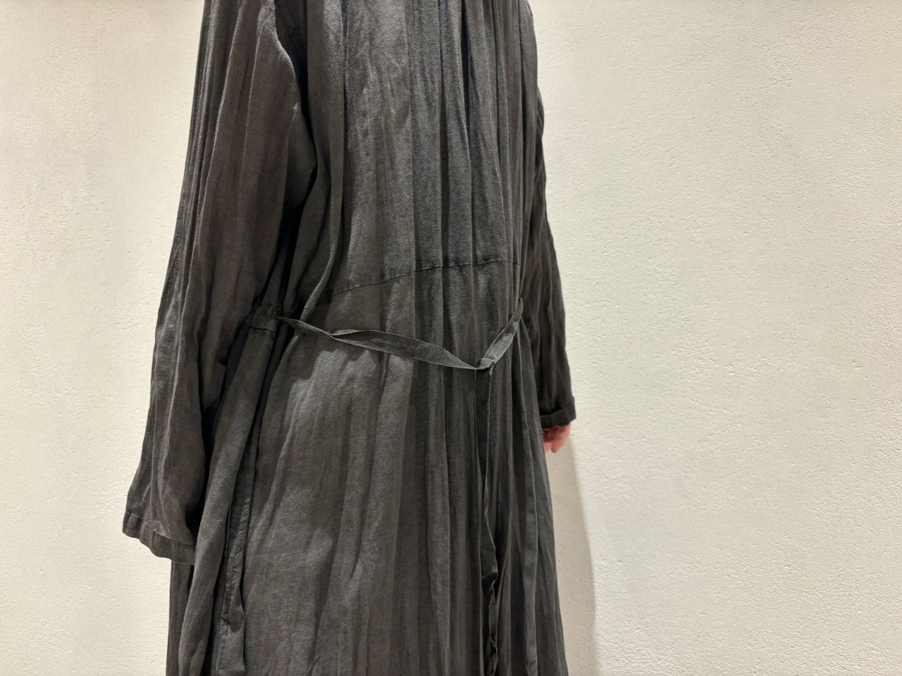 着用のチャコールカラーは、紀州備長炭+顔料ハイブリットムラ染め。