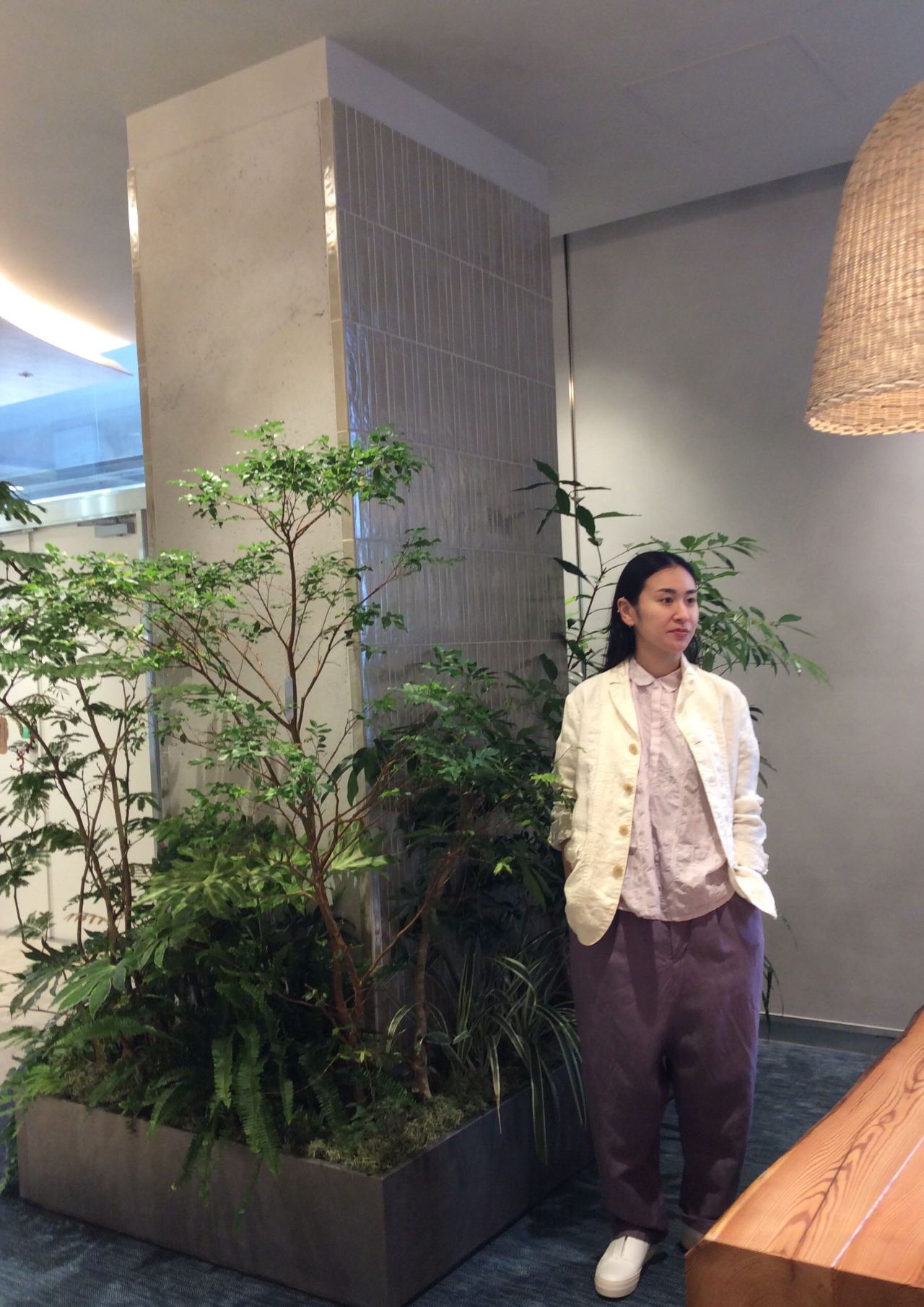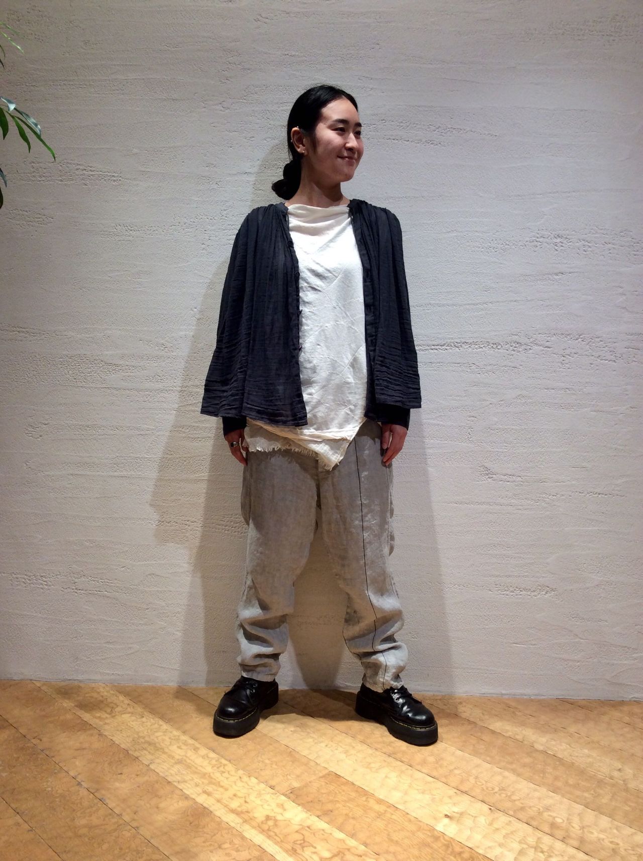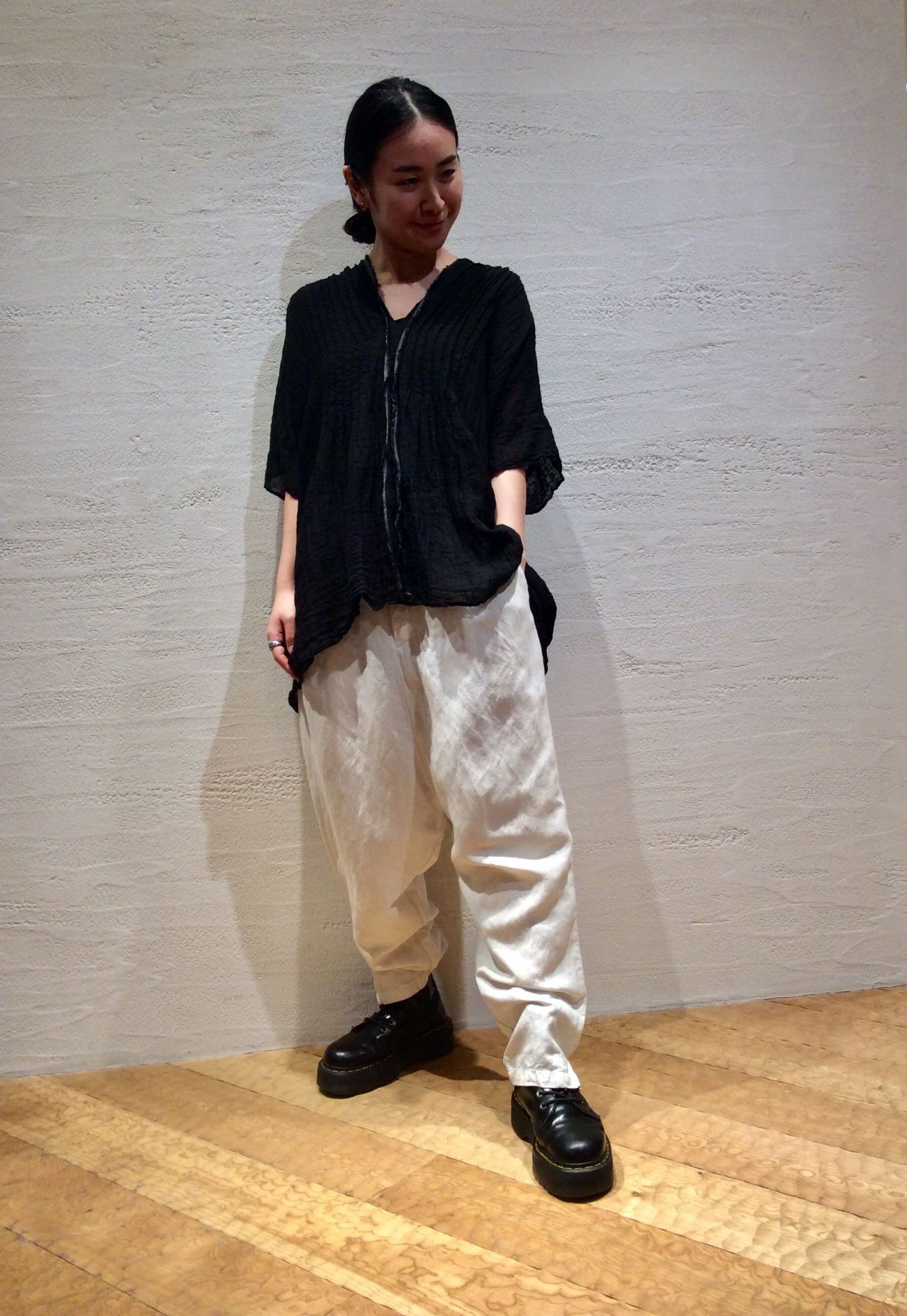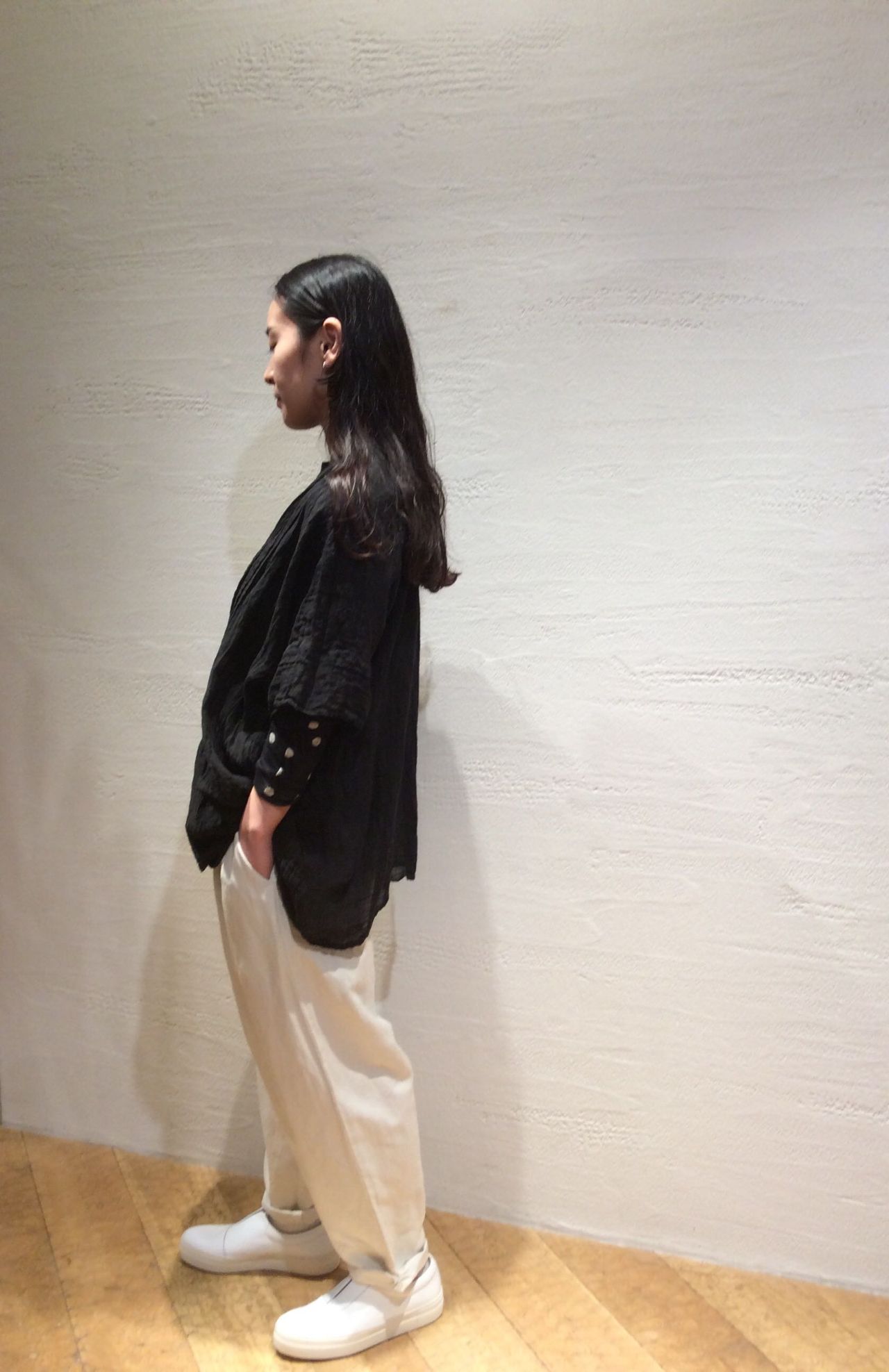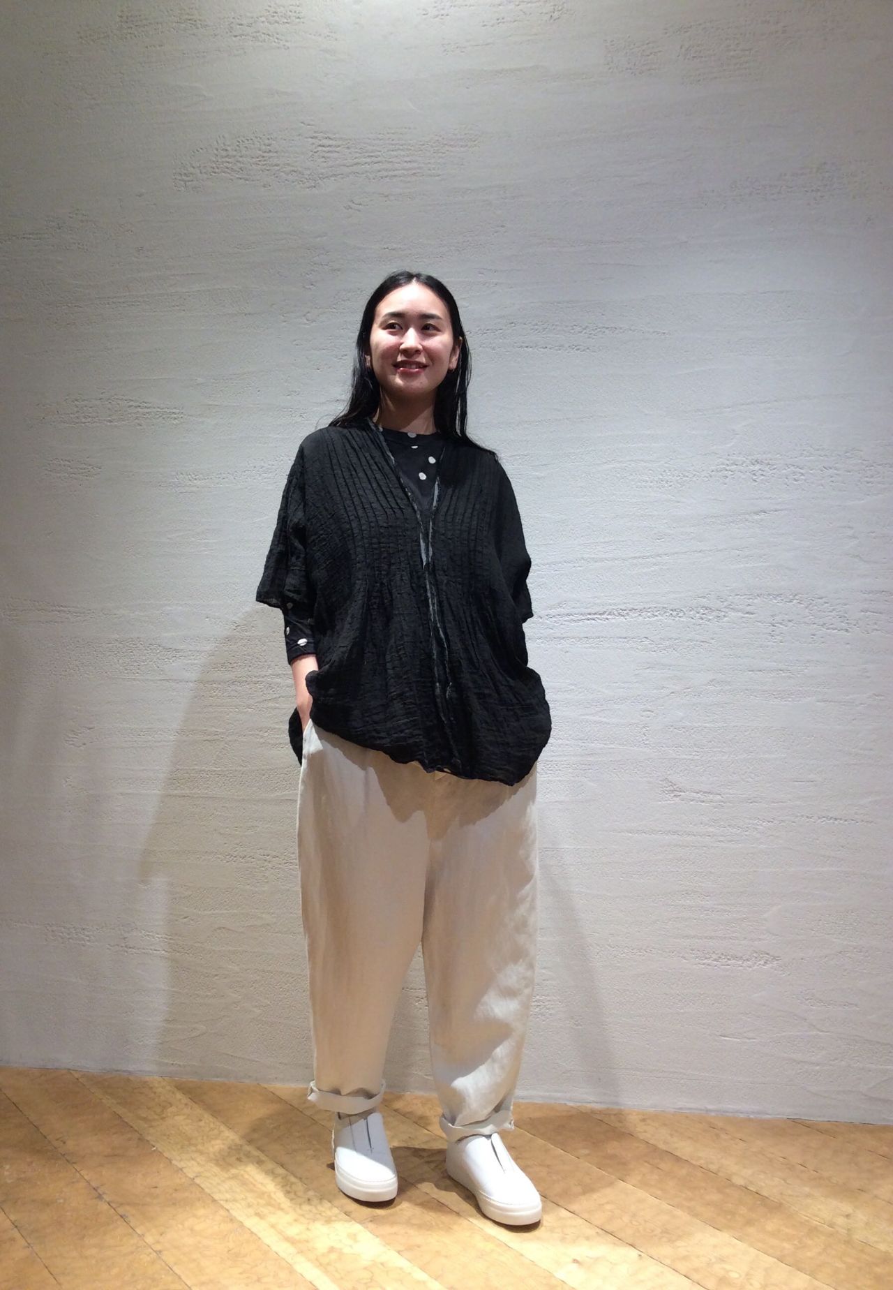 リネン先染めボイルワッシャー(着用:ブラック size36)