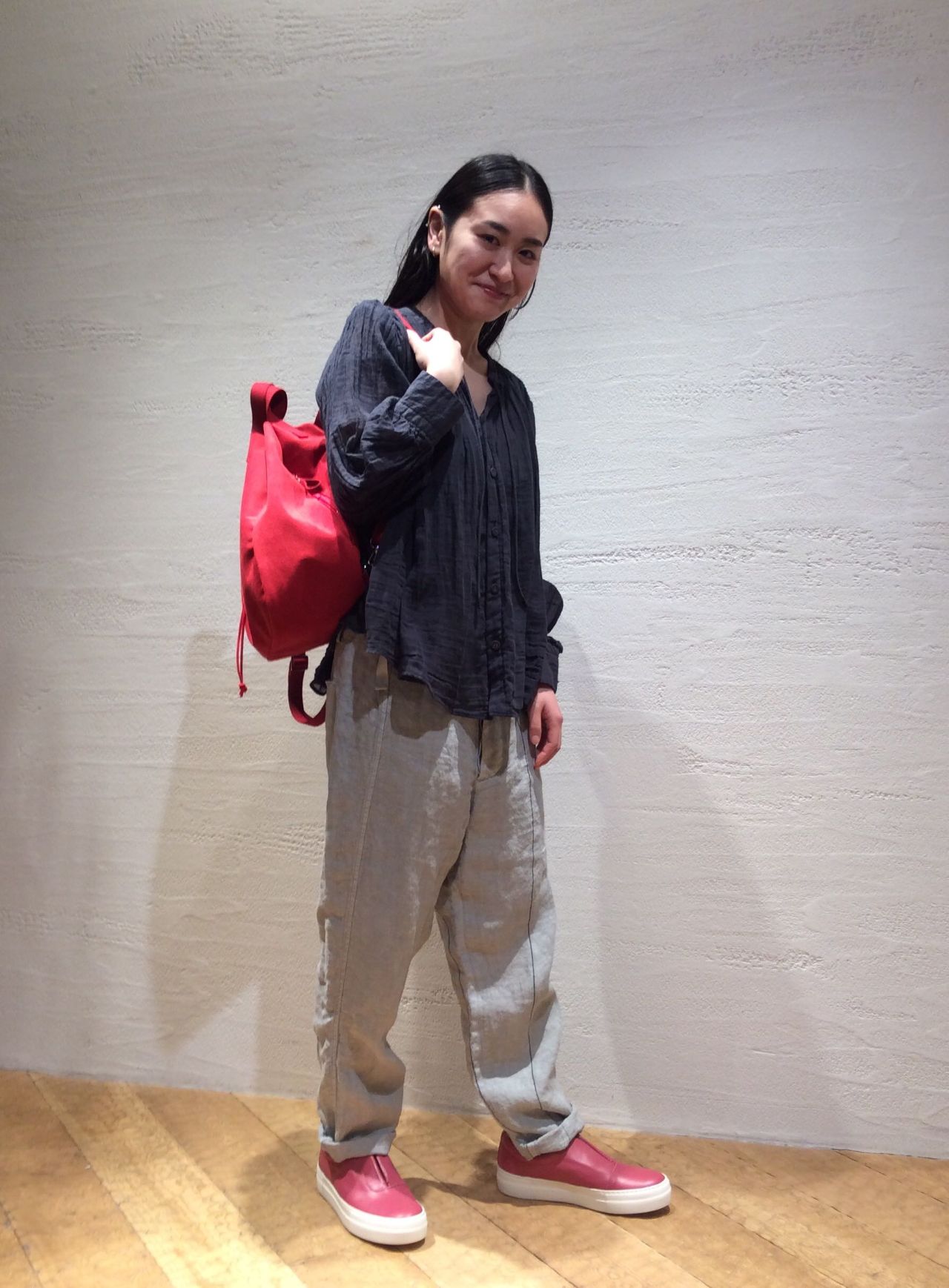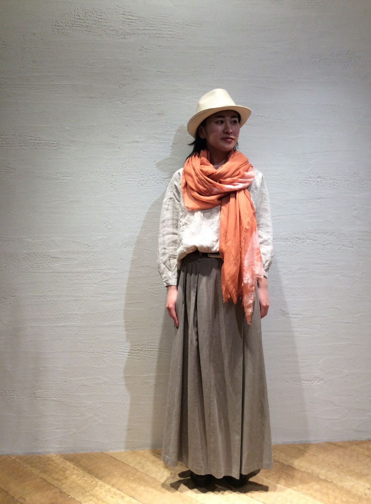 ブラウス1枚の着こなしはこれからの時期にぴったりです。