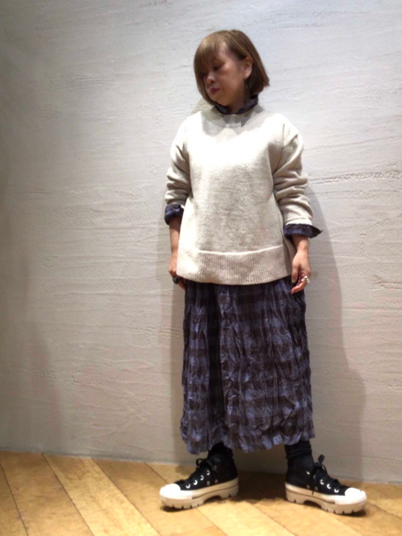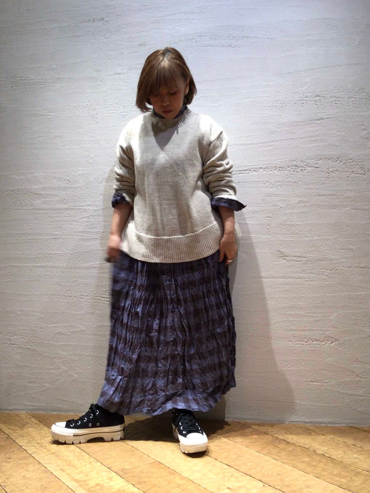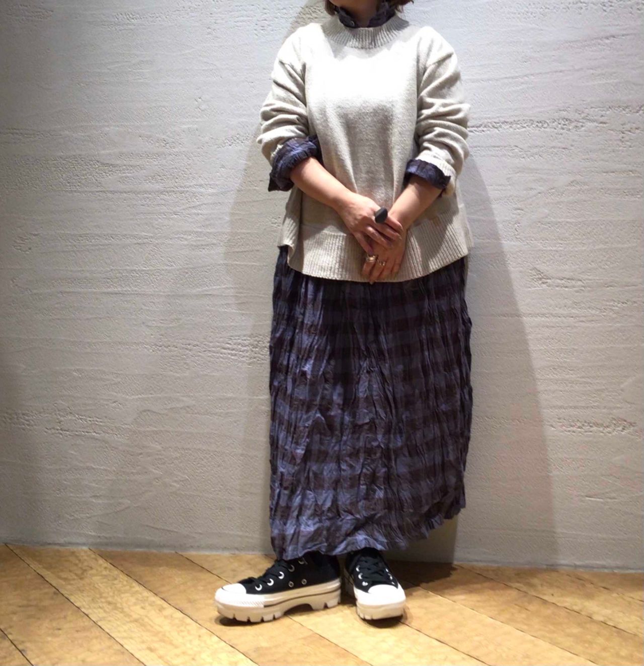 ◆  ブロックチェックスカートNo.  7162  ¥30,800(税込)col.アイボリー/ブルー(着用)