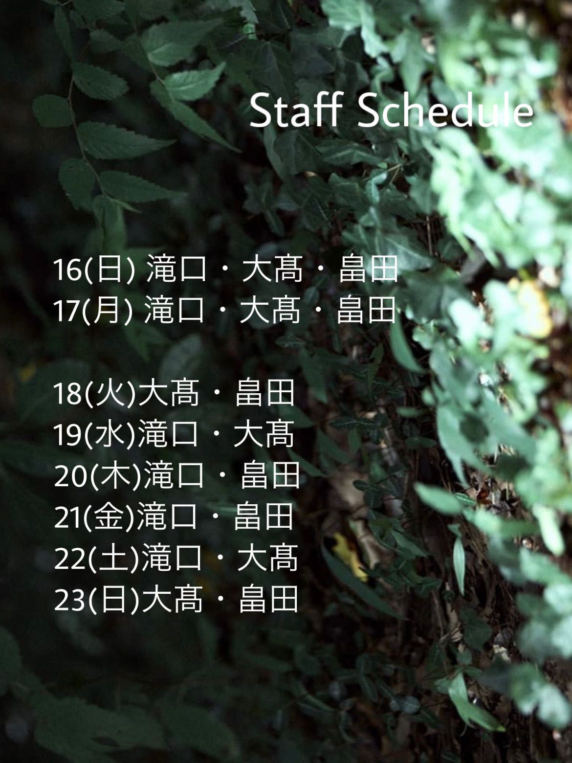 ご希望のスタッフがいる場合は合わせてご指定くださいませ。