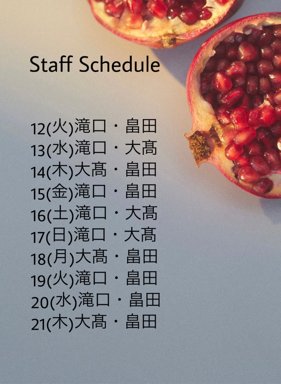 スタッフにお申し付けくださいね。