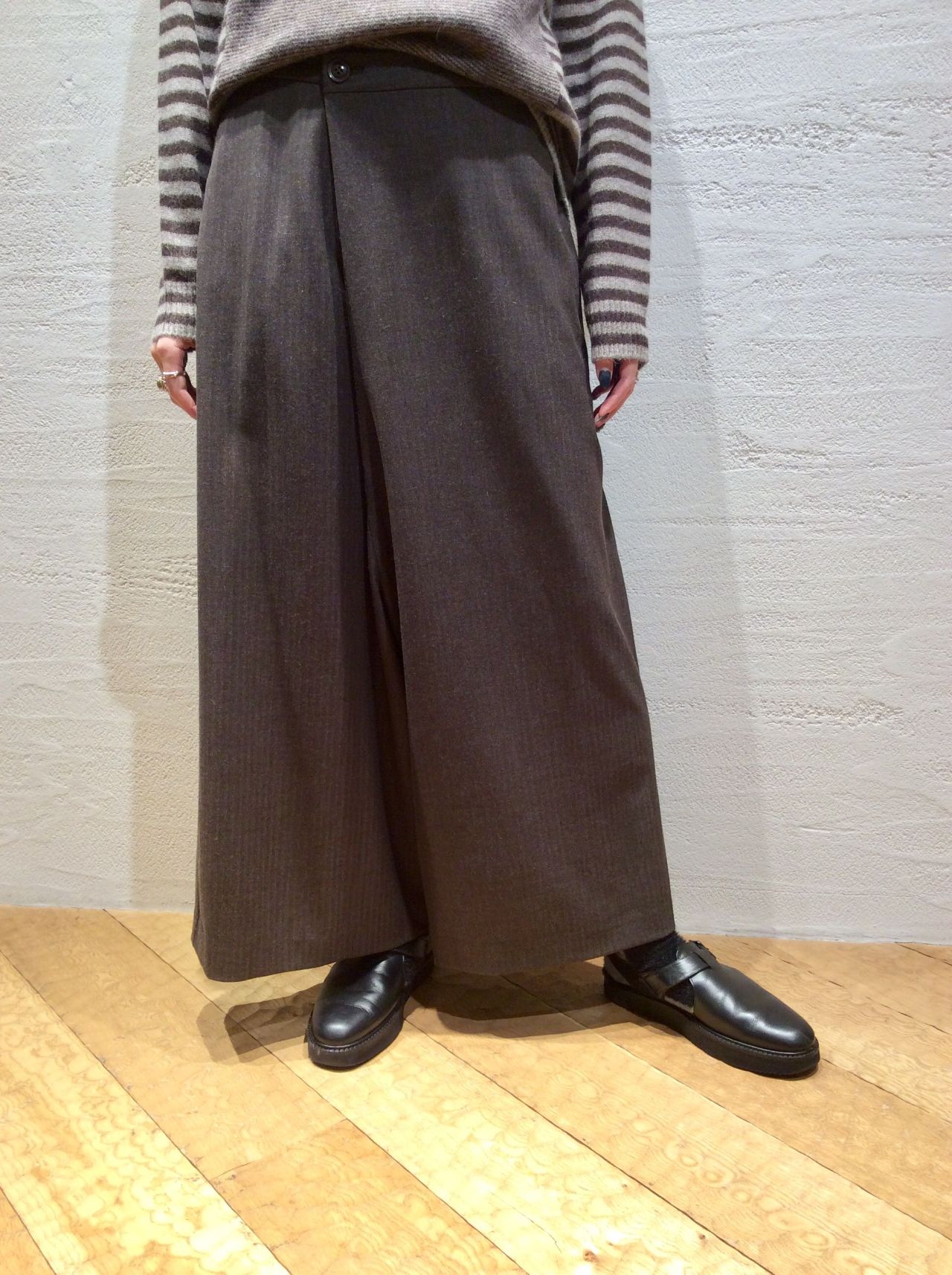 ウォッシャブルヘリンボンワイドパンツ(着用: ブラウン size.36)