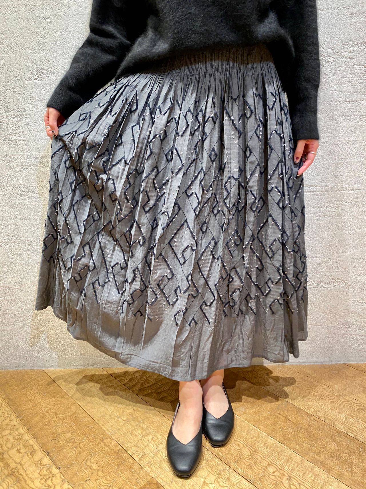 キュプラレーヨンカットジャガードスカート(着用:グレー)