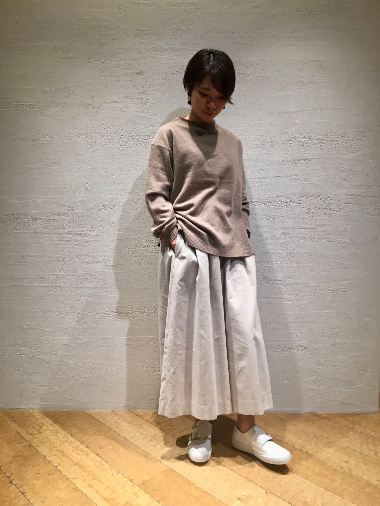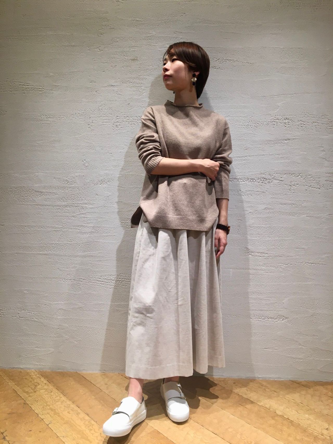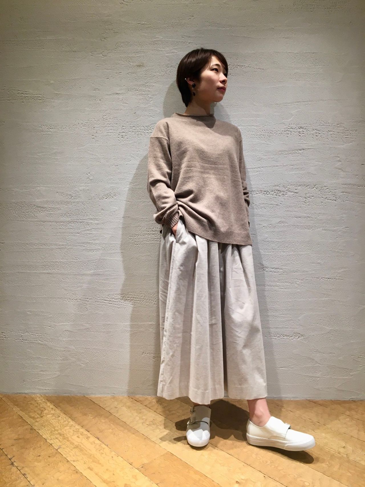 カシミヤ混・ボトルネックプルオーバー(着用:ベージュ size.36)