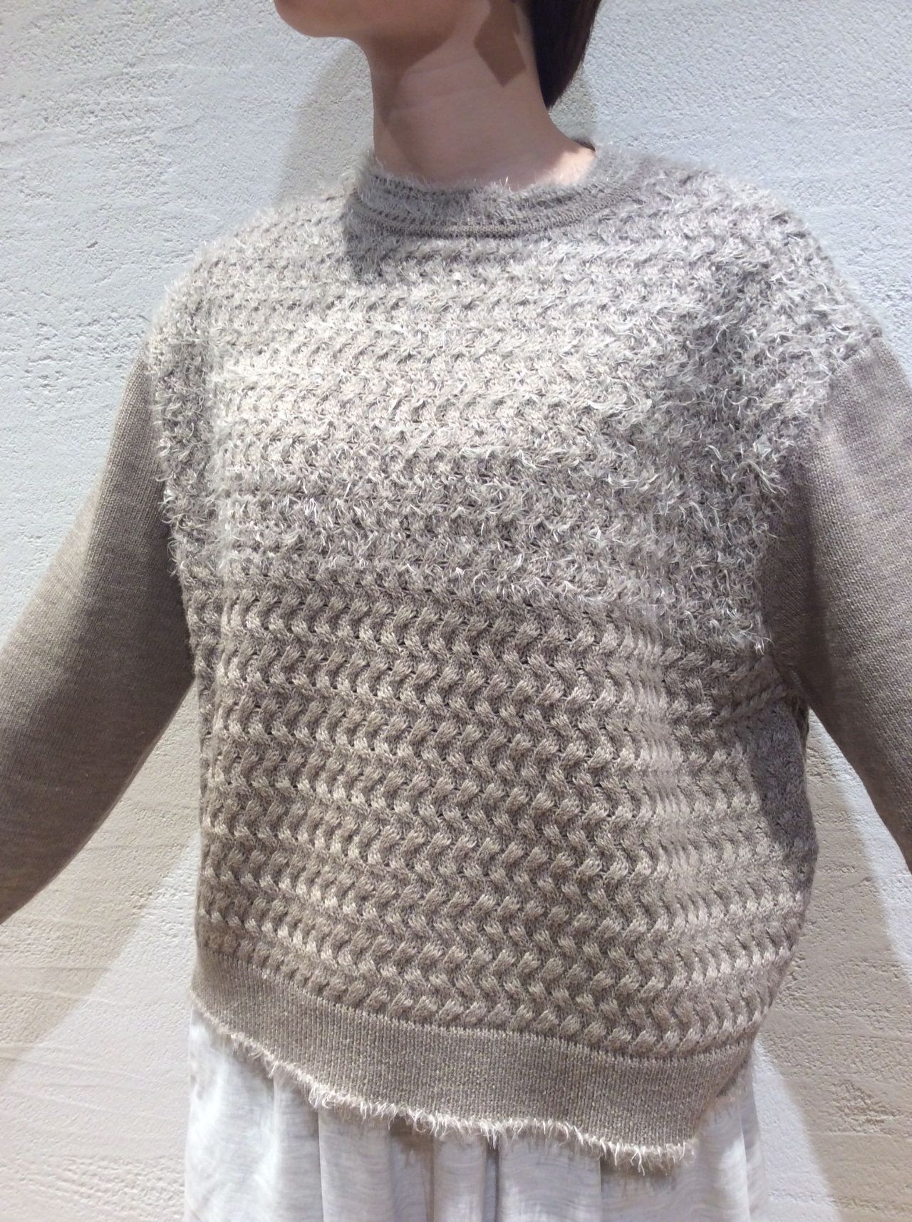 フェザーモール・切り替えプルオーバー(着用:ベージュ系)