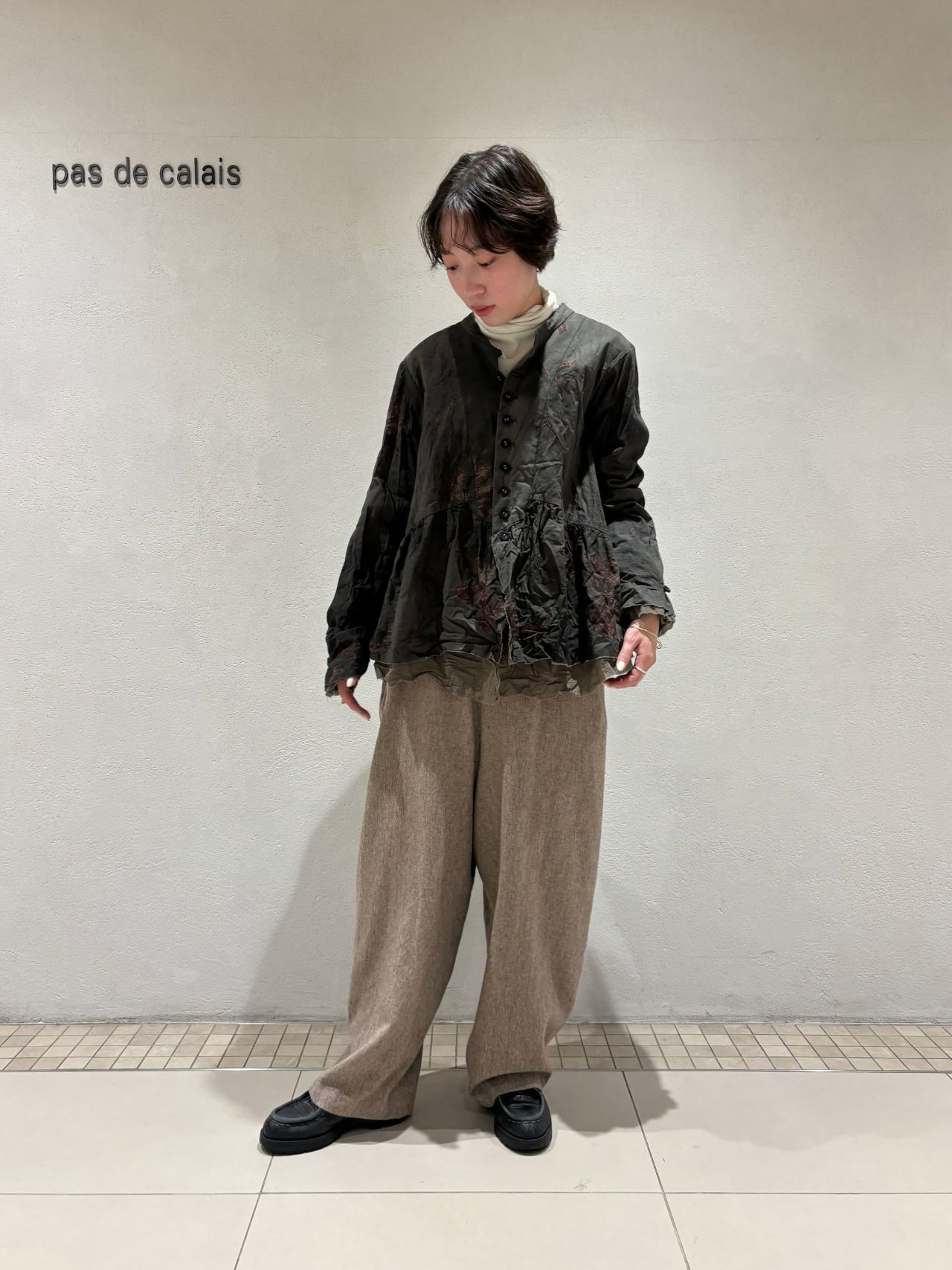袖口、裾には表地とコットンボイルの生地と二重になり、シワ感と相まってパドカレならではの雰囲気を楽しめる一着です。