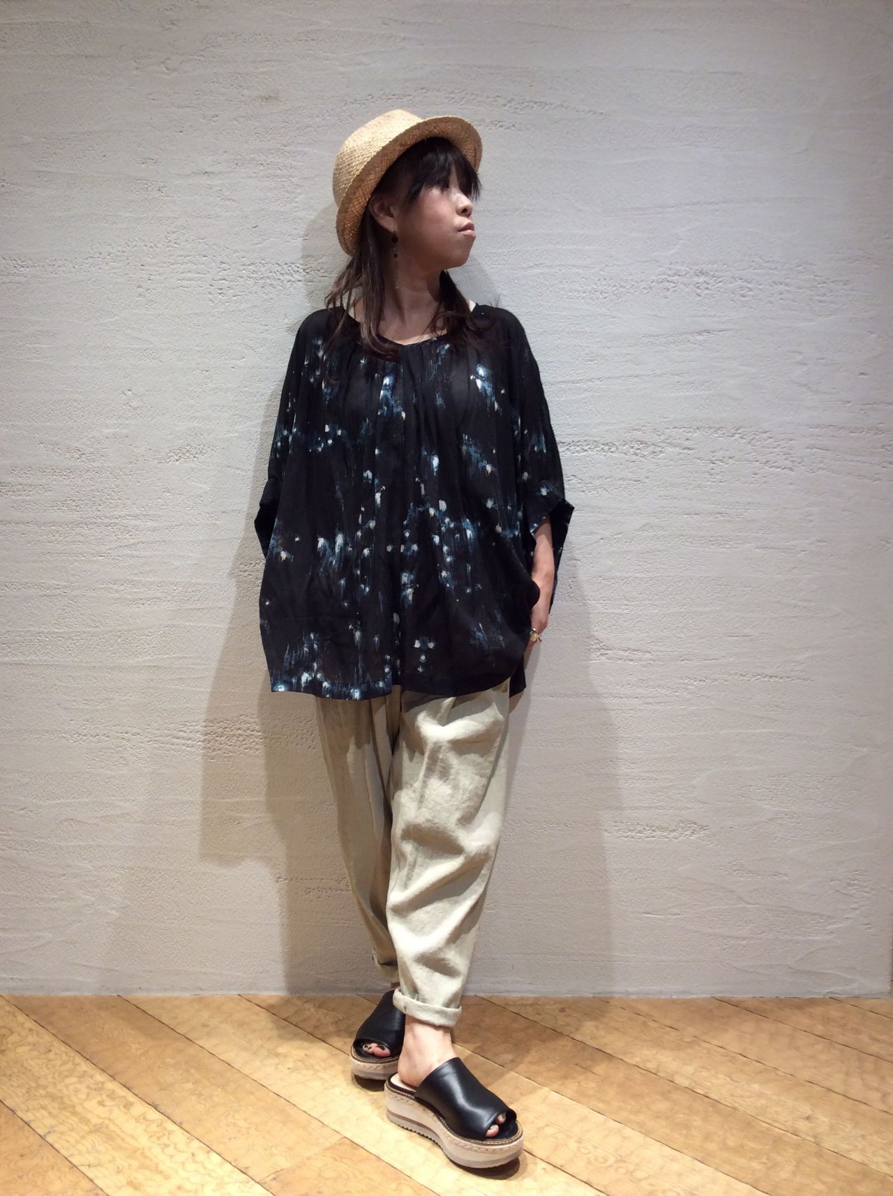ワイドパンツを合わせても、また違った雰囲気になりバリエーションが広がりますね◎