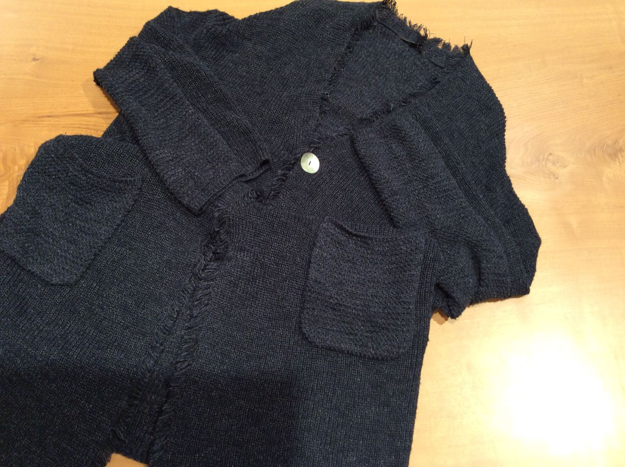 前たてのフリンジ始末がラフ感を演出。