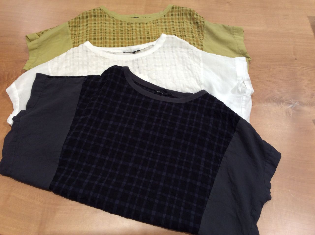 コットン/シルク/キュプラチェックブラウス(着用:チャコール)