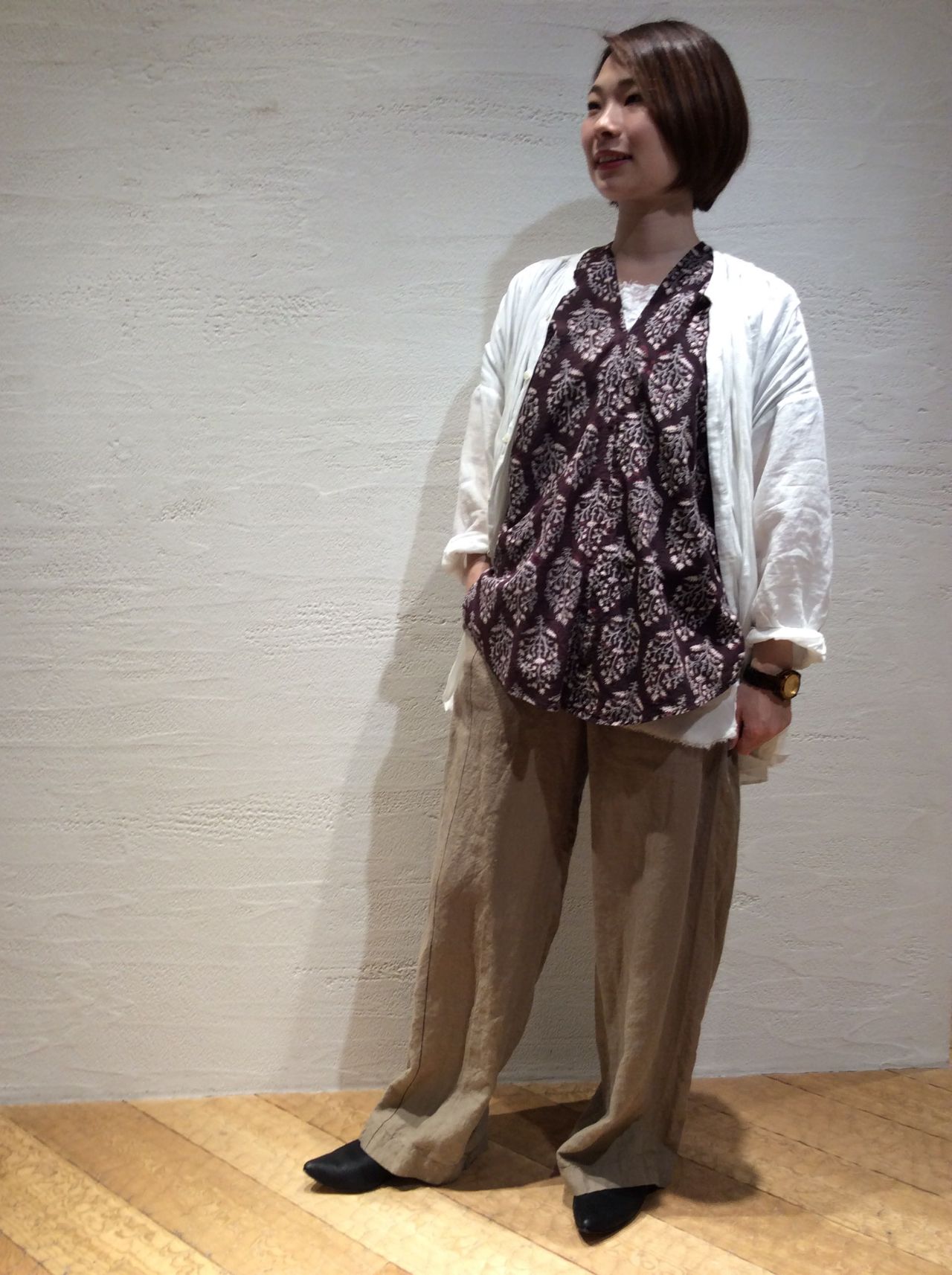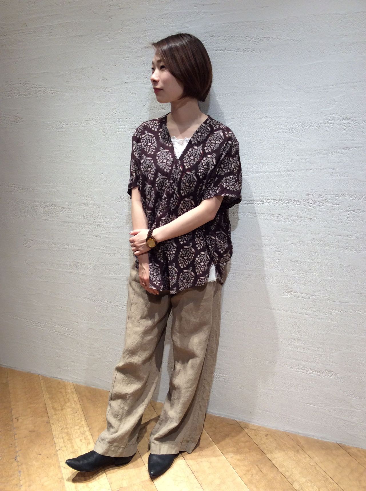 ブロックプリントブラウス(着用:ブラウン)
