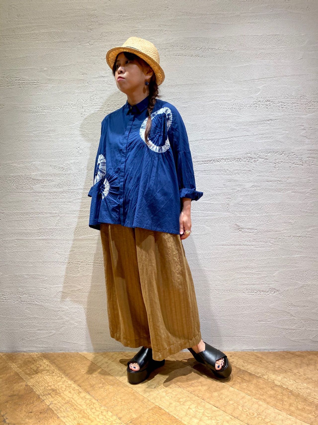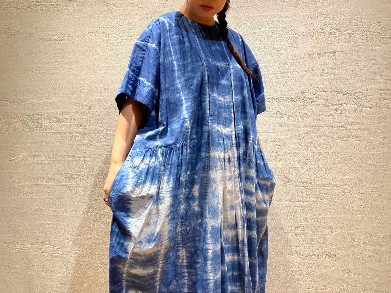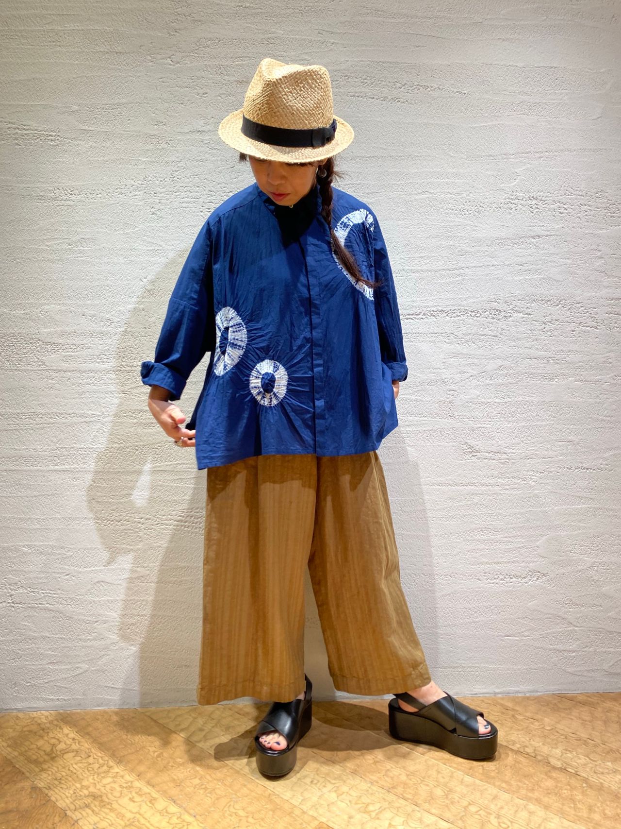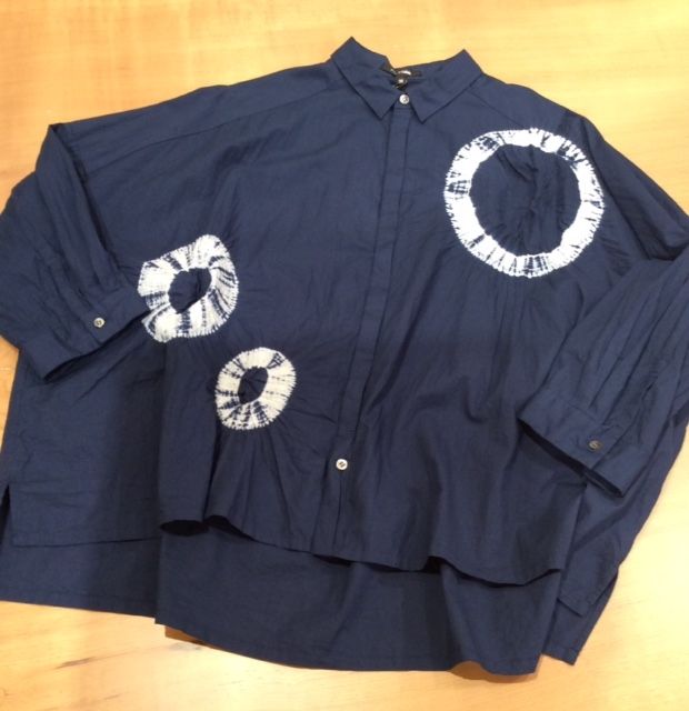 ブラウスには縫う絞りという下絵に沿って平縫いをしてから染め上げる技法を用いました。