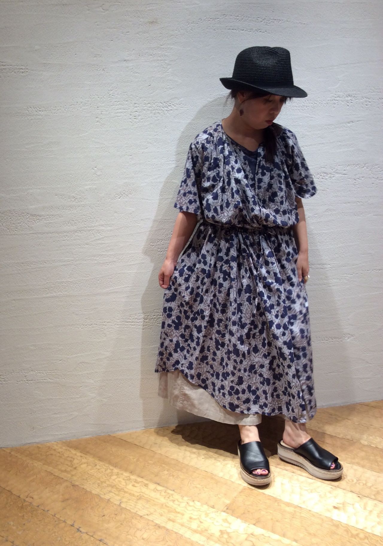 ローン花柄プリントワンピース(着用:ブルー)