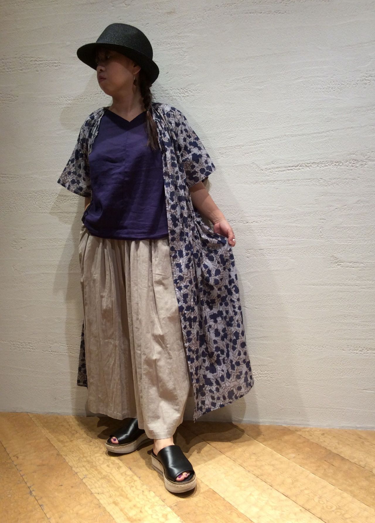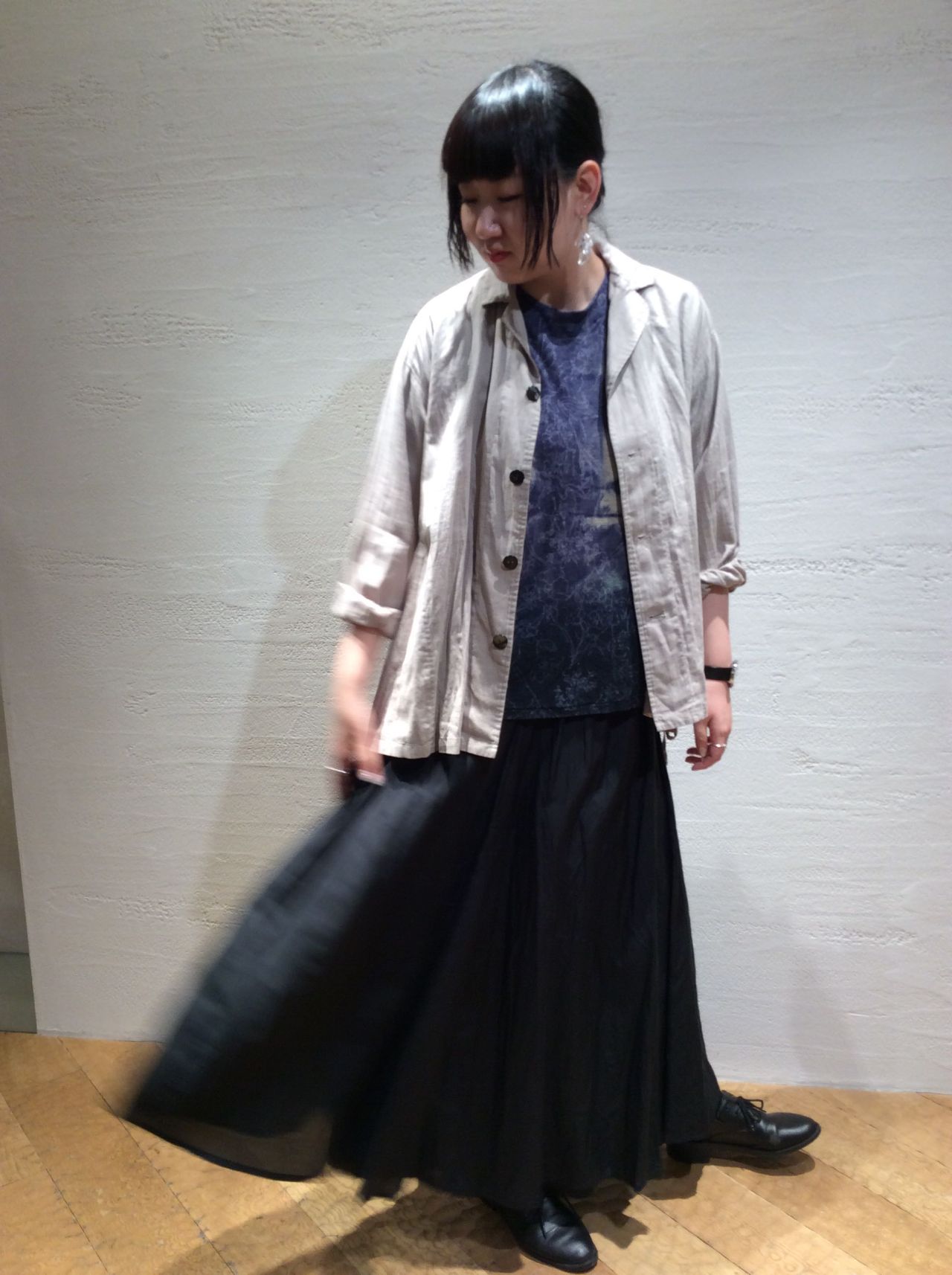 コットンシルクスカート(着用:ブラック)