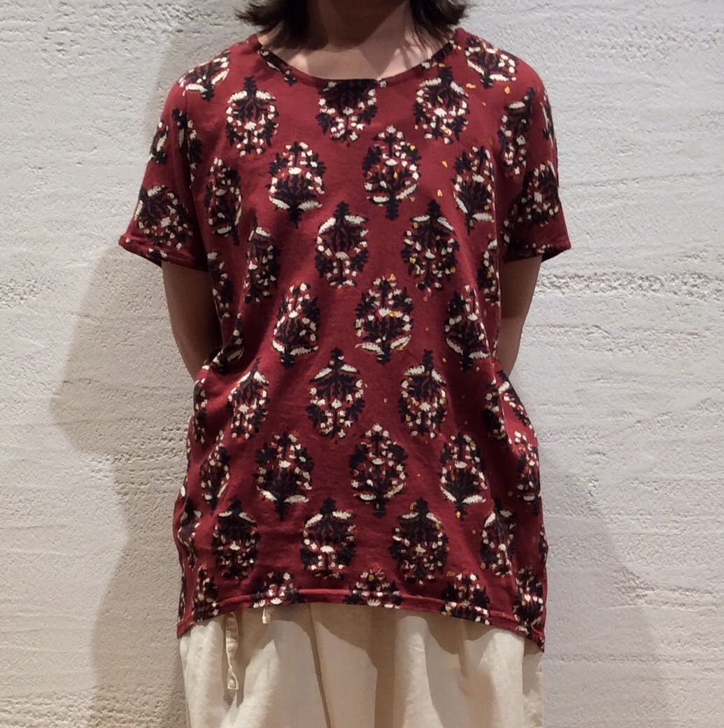 ブロックプリントとは、インドの伝統的な植物染料を使い小さな木彫りの版でスタンプを押すように1つ1つ丁寧に手作業で作り上げた完全ハンドメイドのプリント。