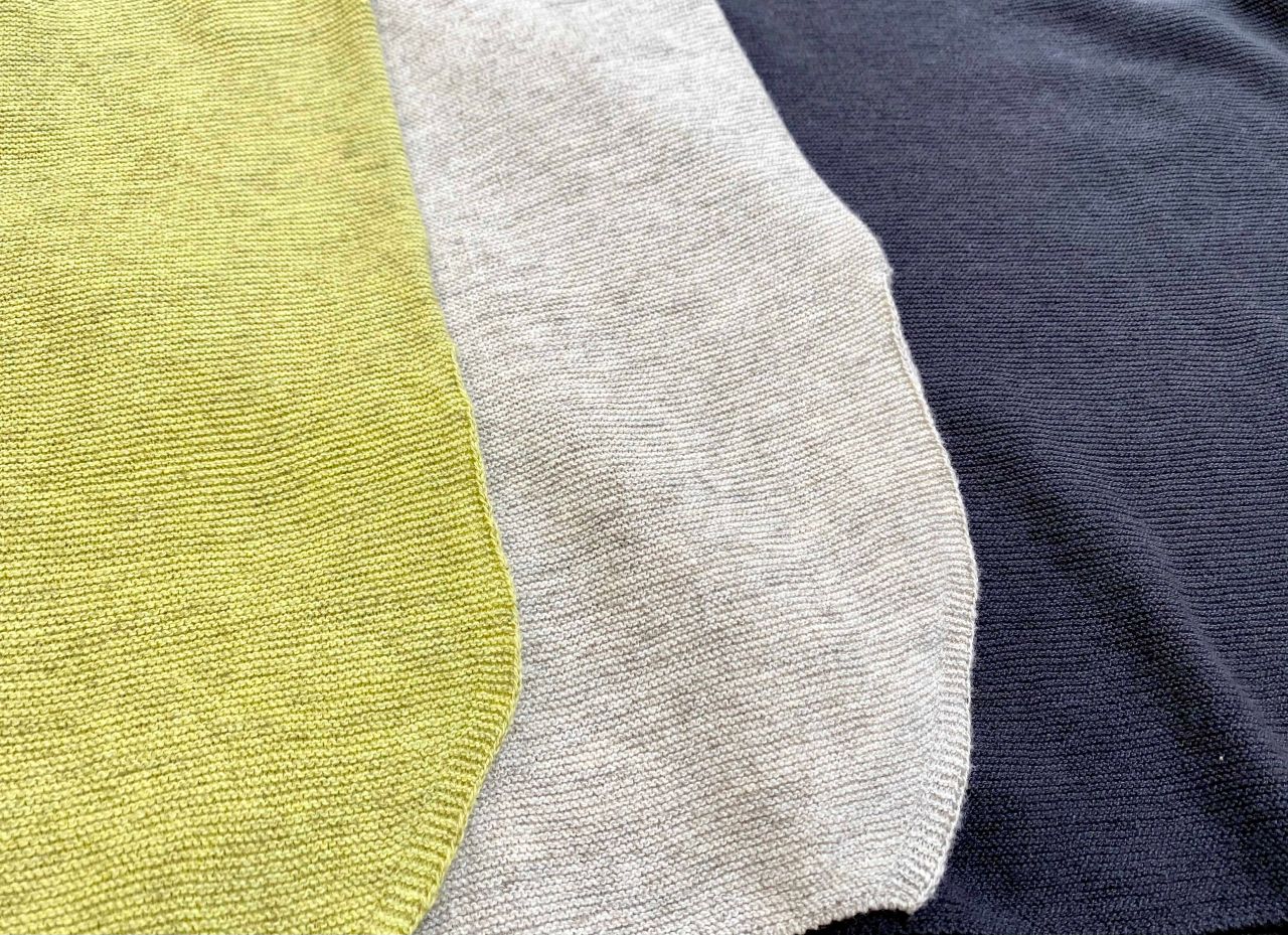 上質なオーガニックコットンにヤクウールをブレンドした素材で、程よいシャリ感と軽い着心地が特徴。