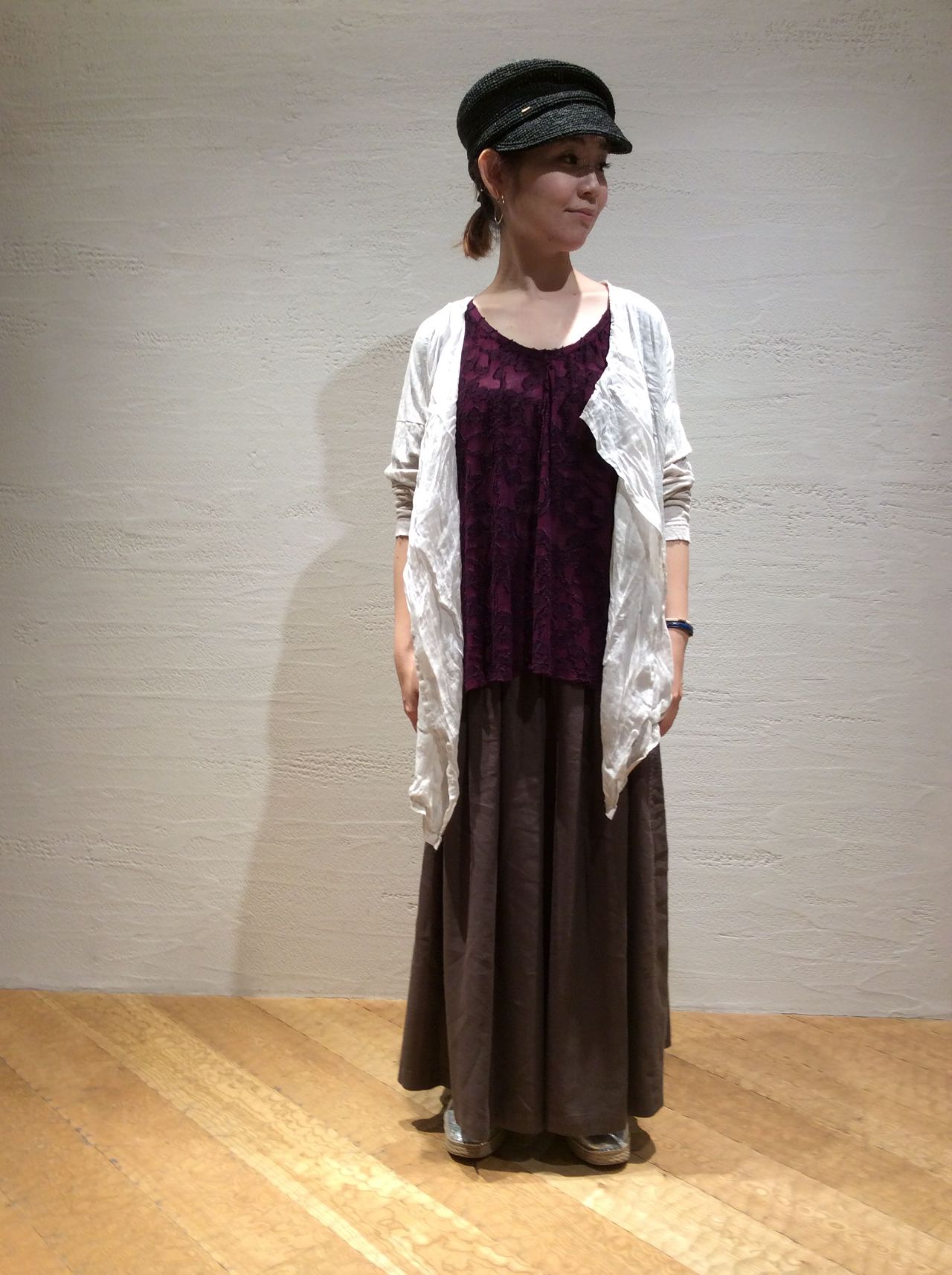 ギャザーが沢山入っていて落ち感のあるスッキリとしたシルエットですよ。