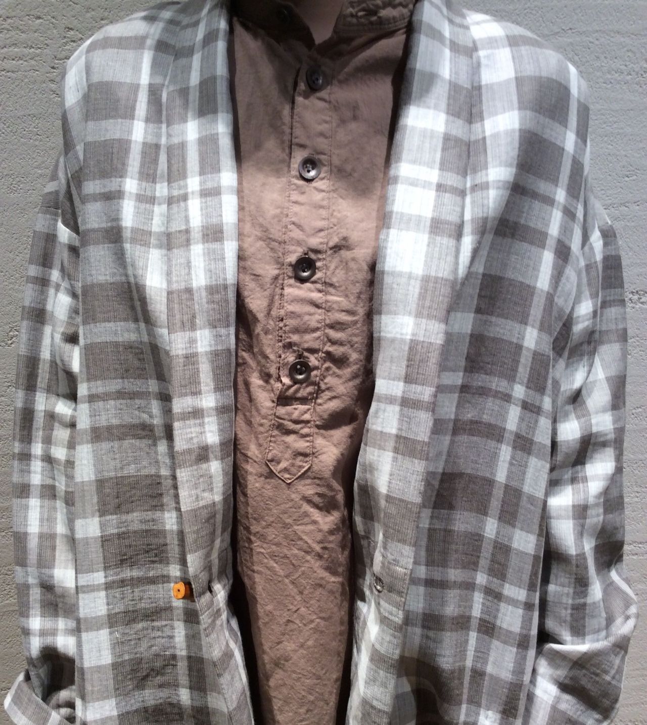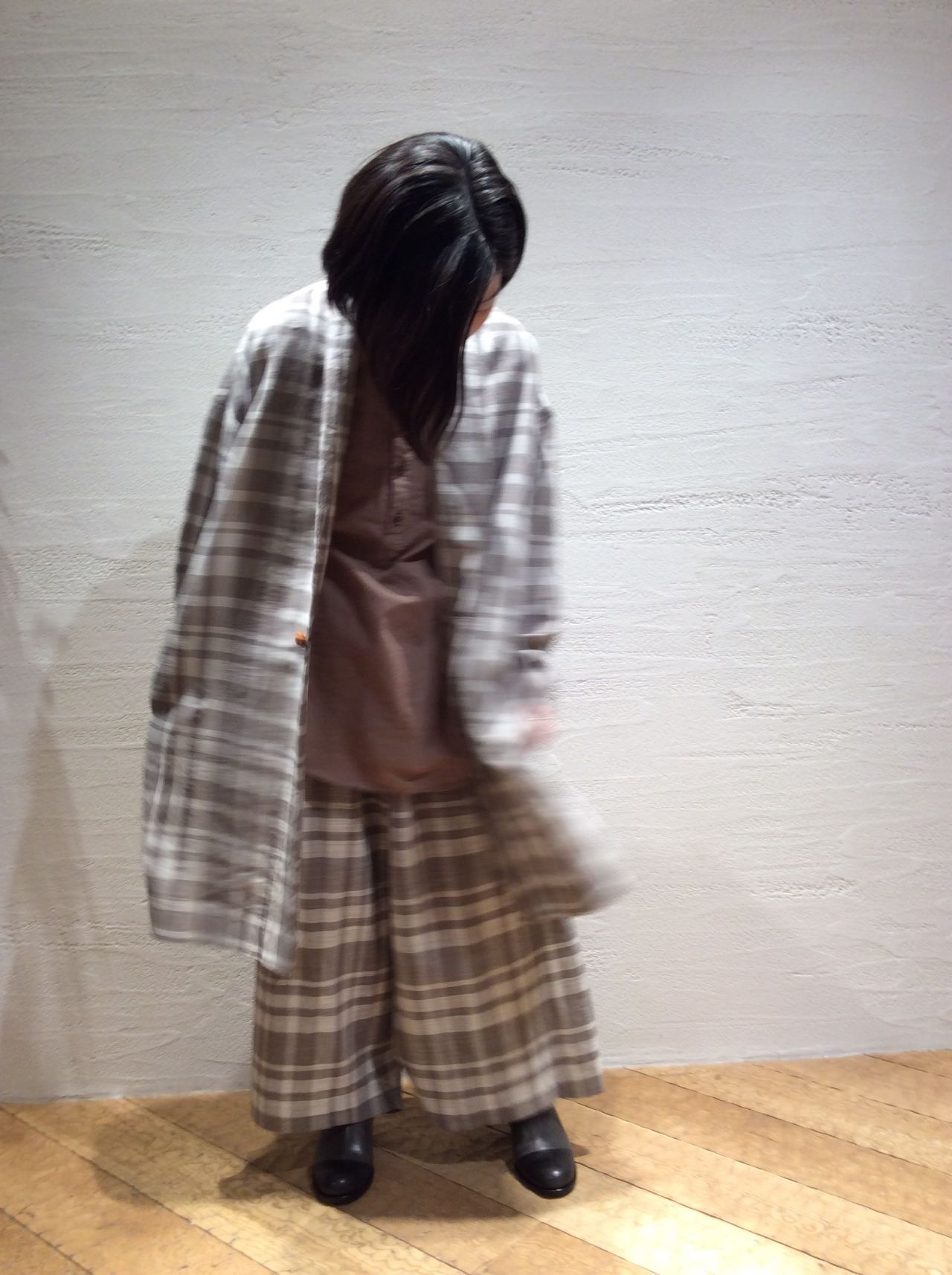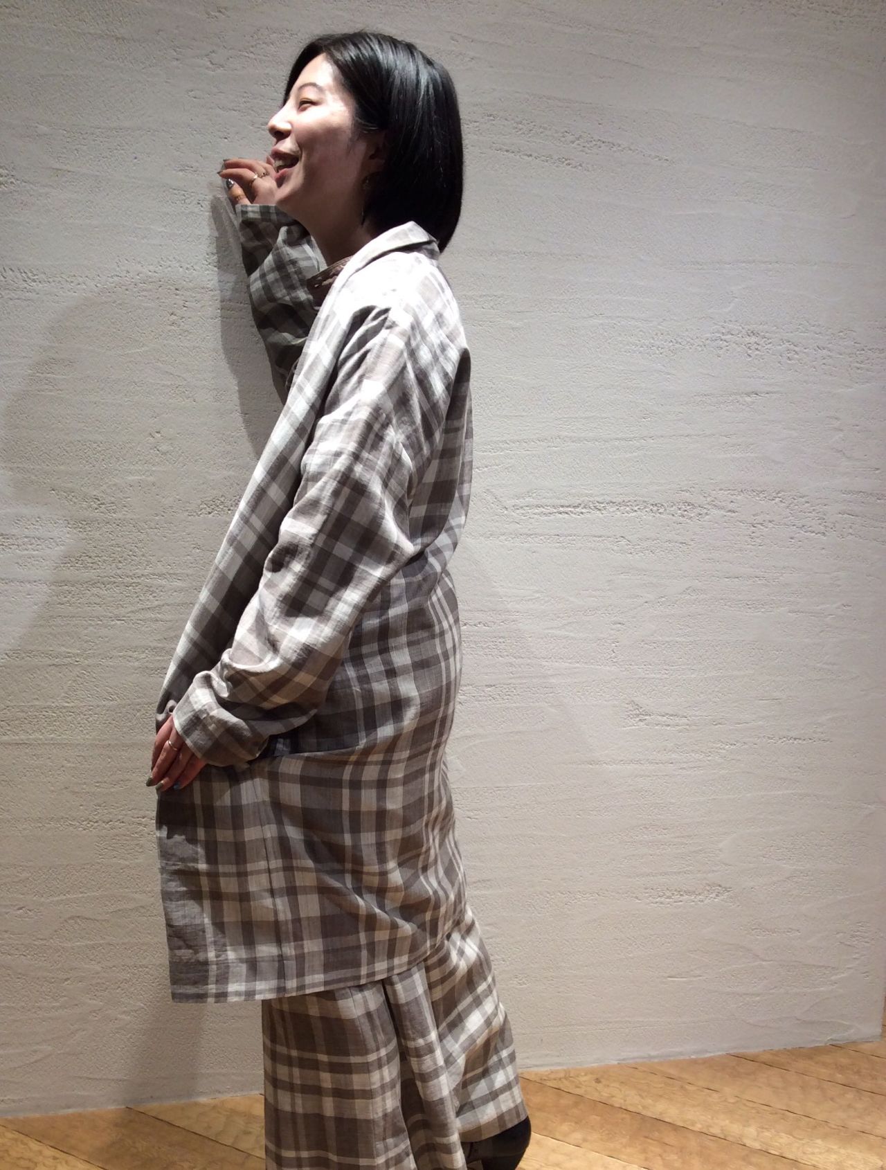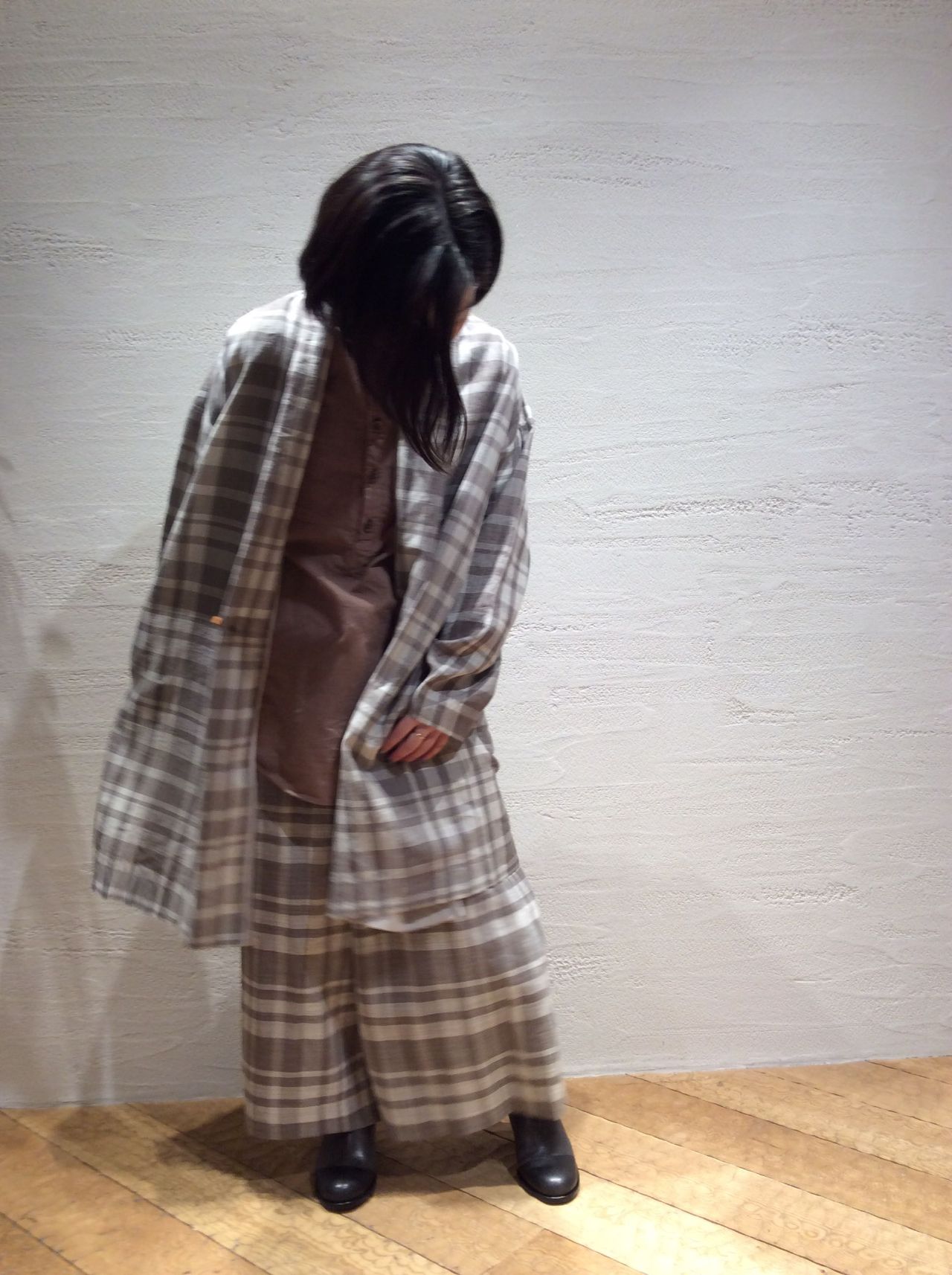 TOP チェックコート(着用 : グレー )
