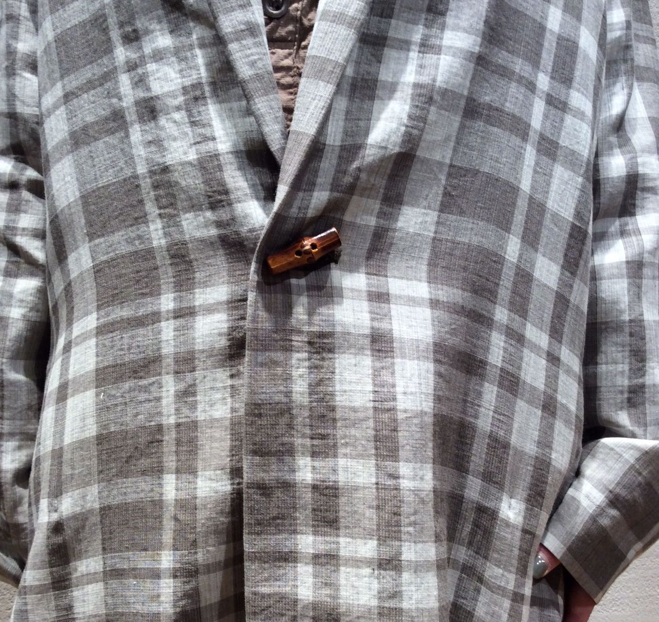 天然の竹のボタンを付けてますね。