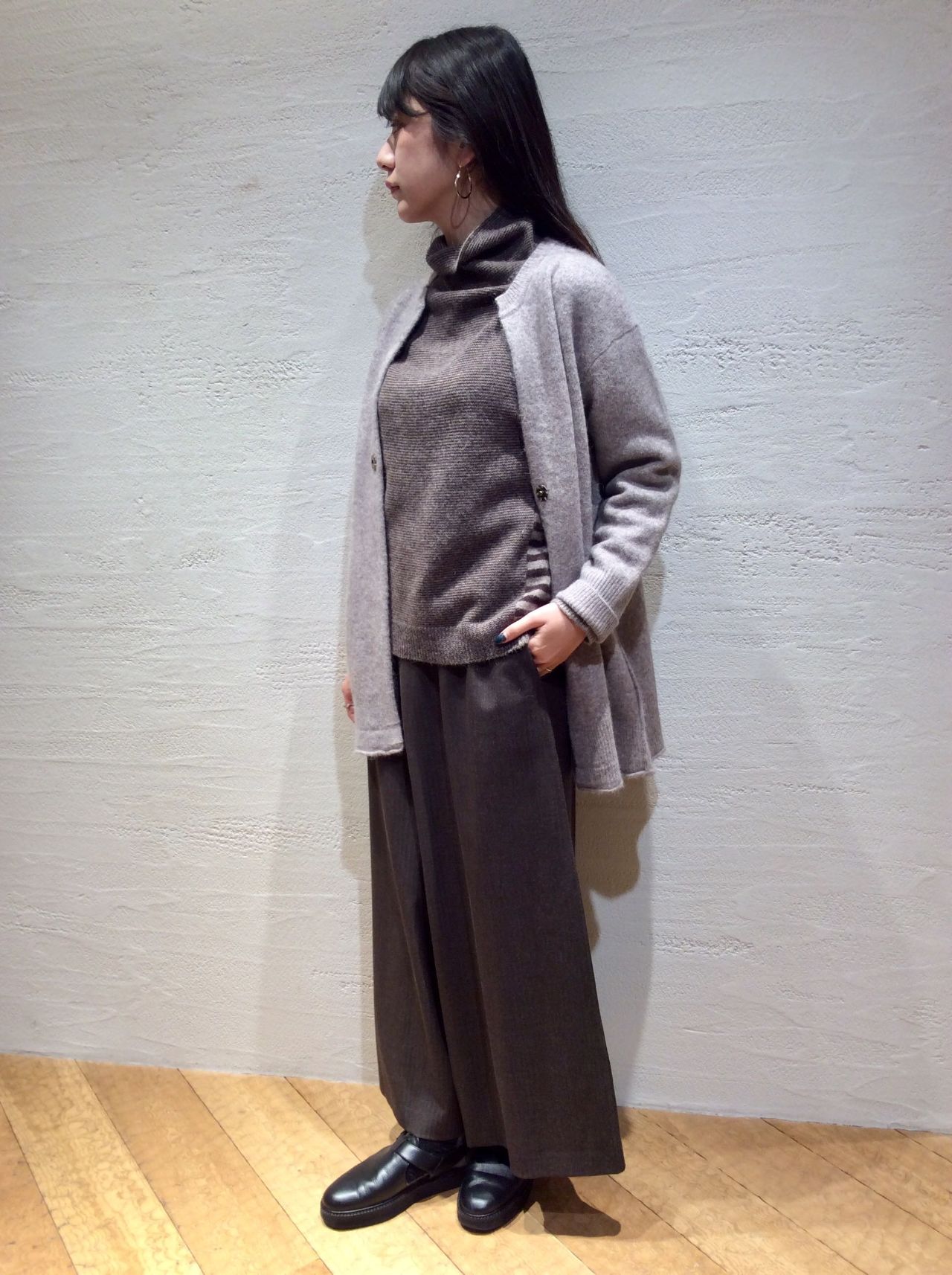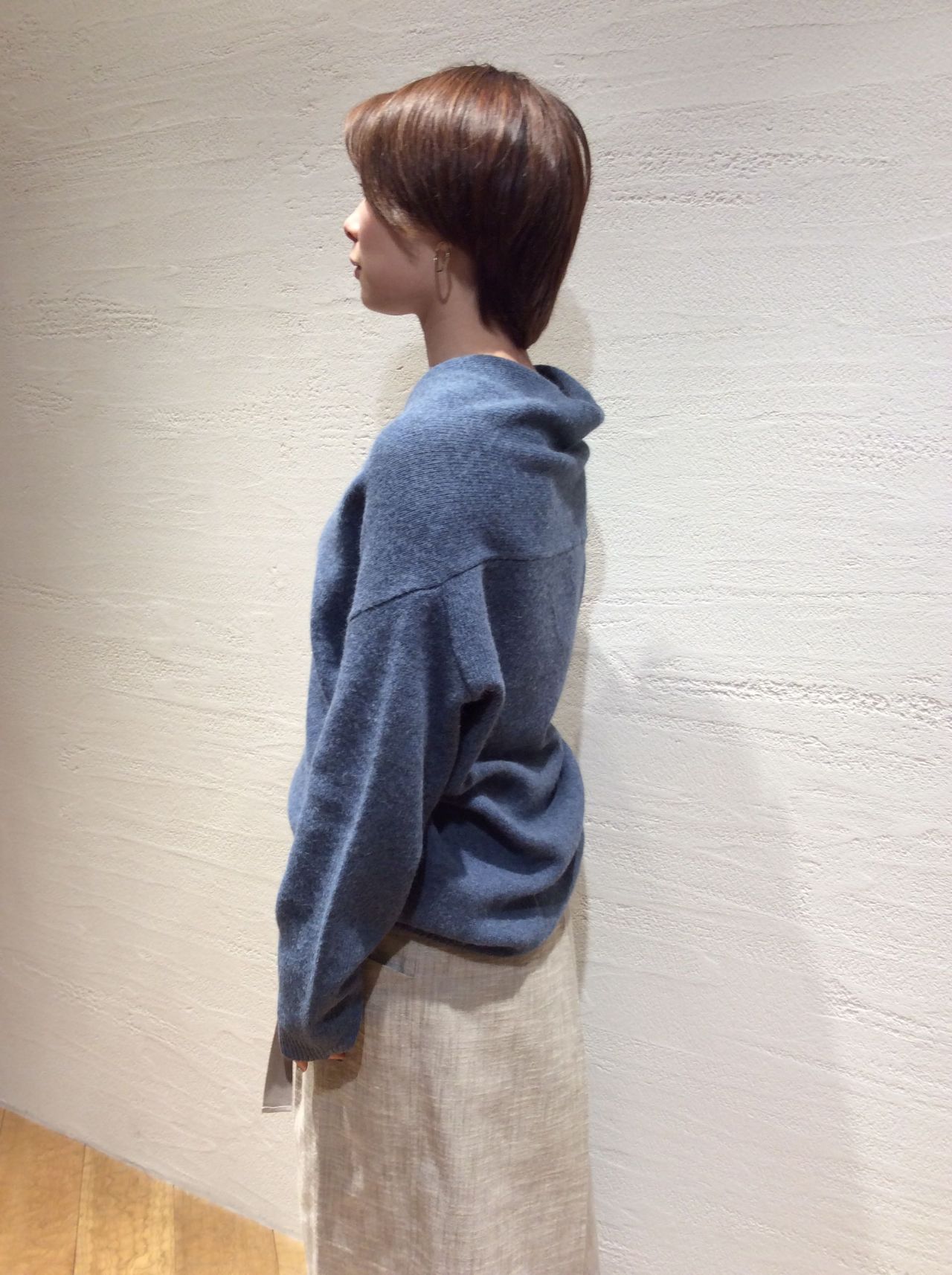 新作 アンゴラ混イカ襟ニットプルオーバー&先染むら糸使い深起毛スカート
