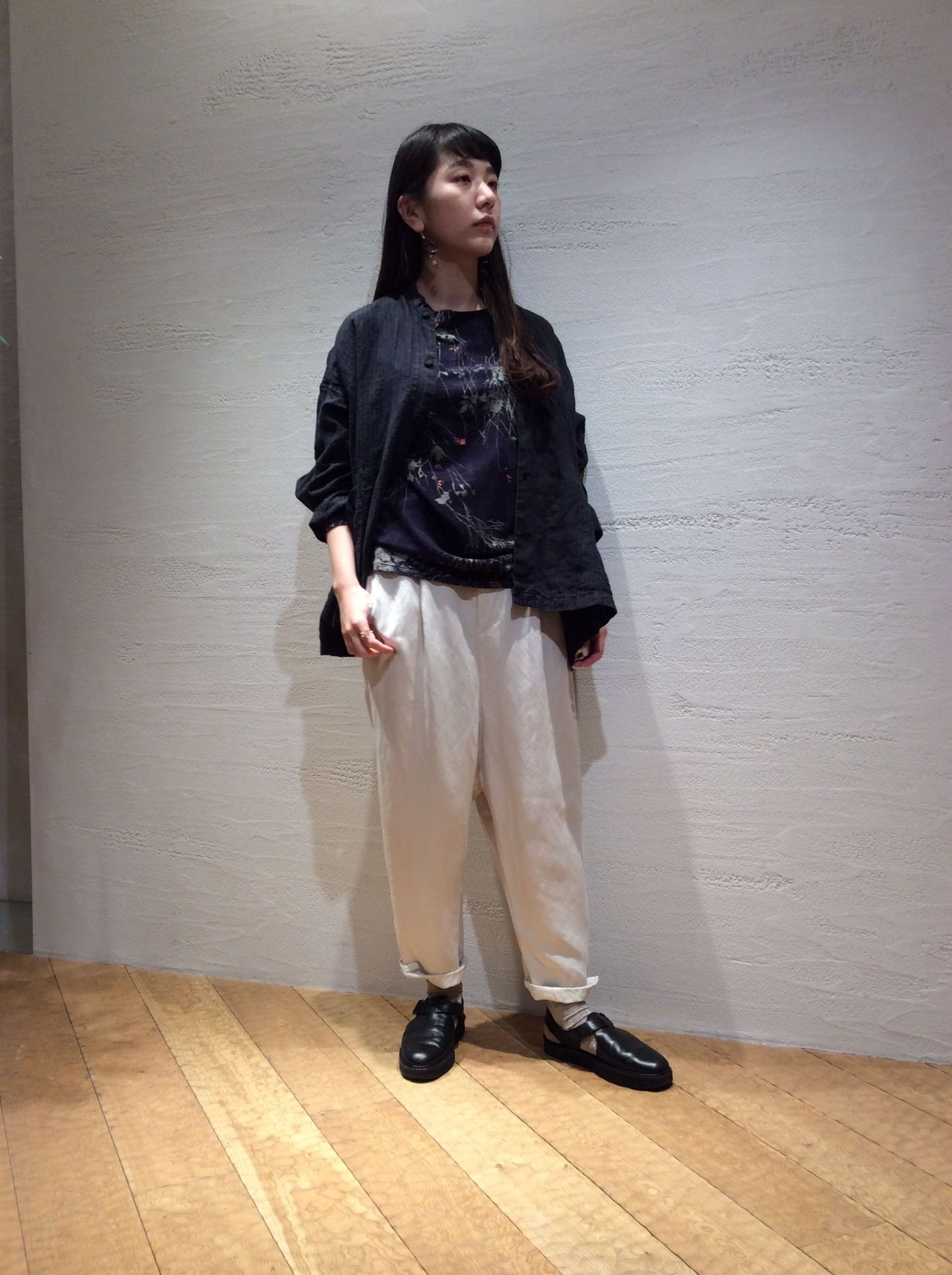 リネン/レーヨン平パンツ(着用:ホワイト)