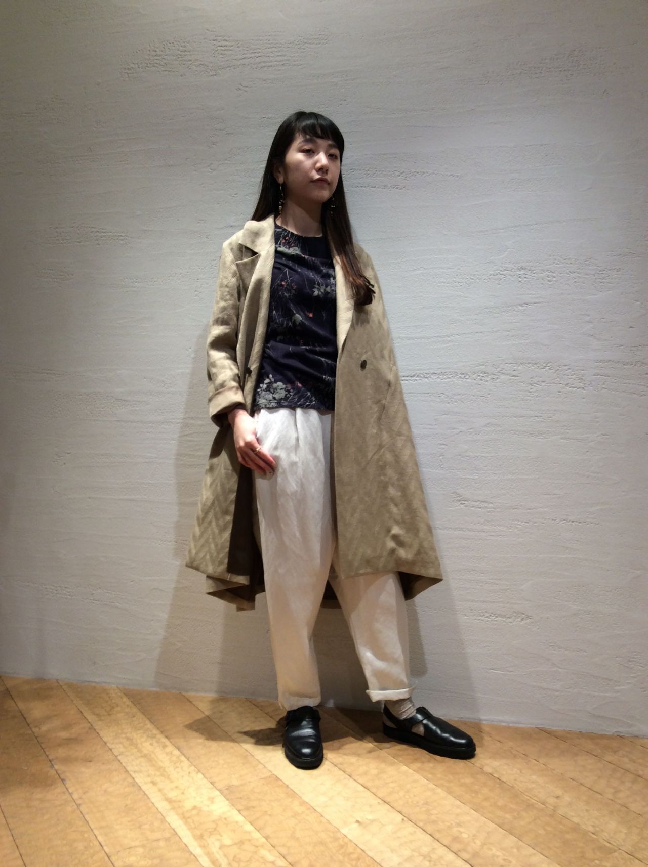 リネン・ワイドヘリンボンコート(着用:ベージュ)