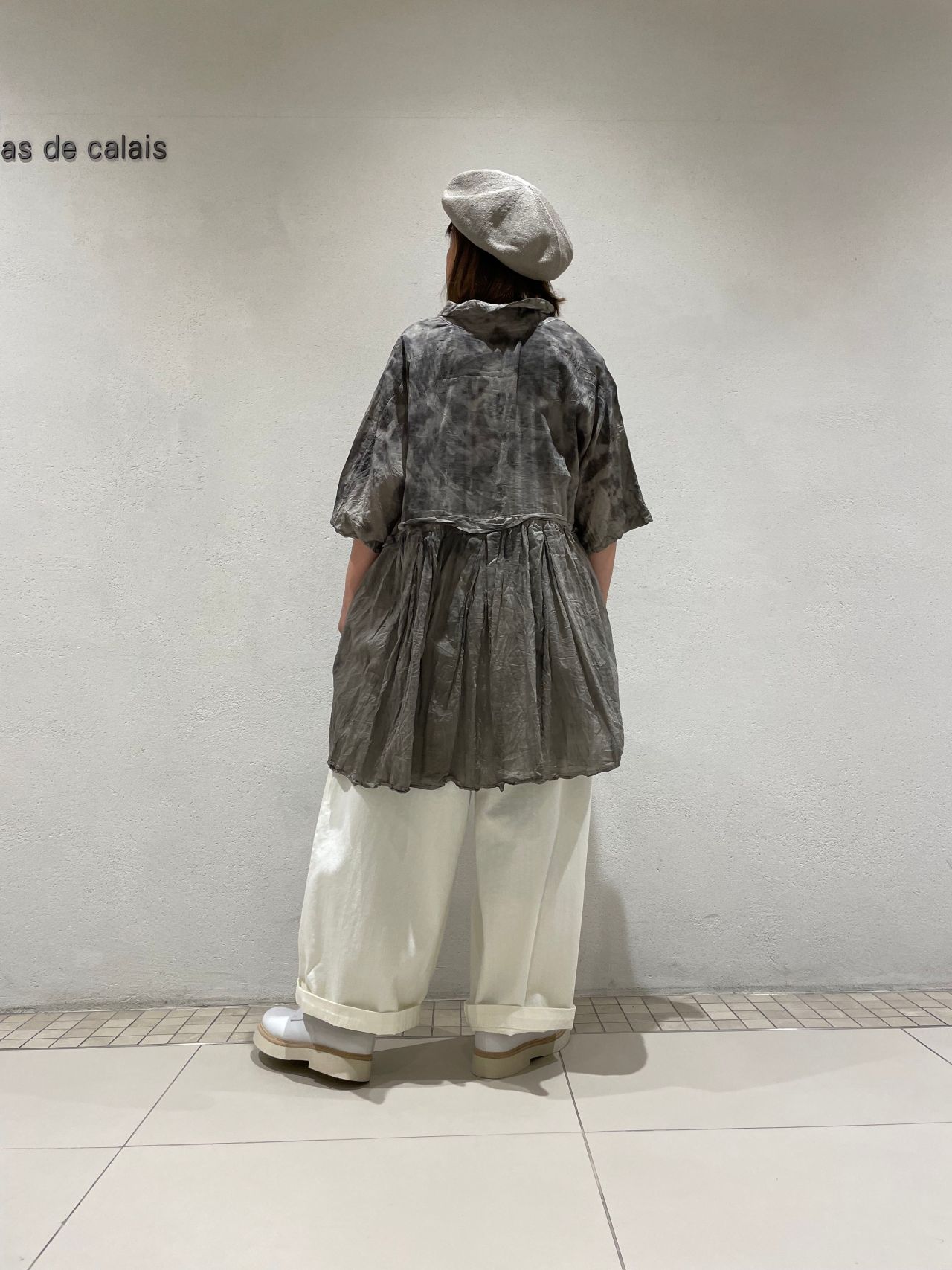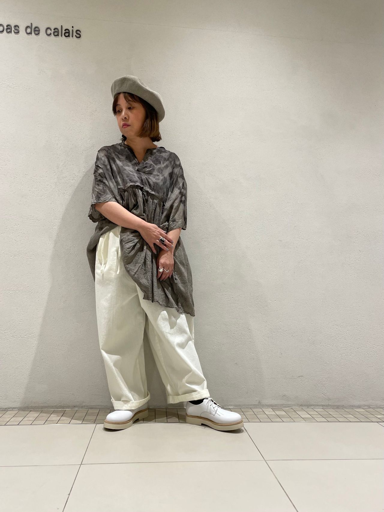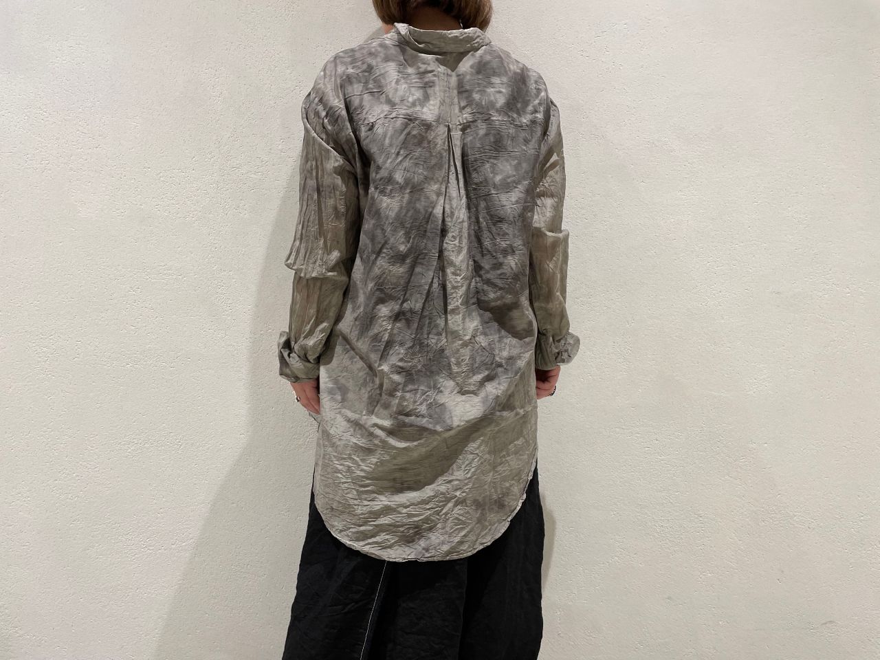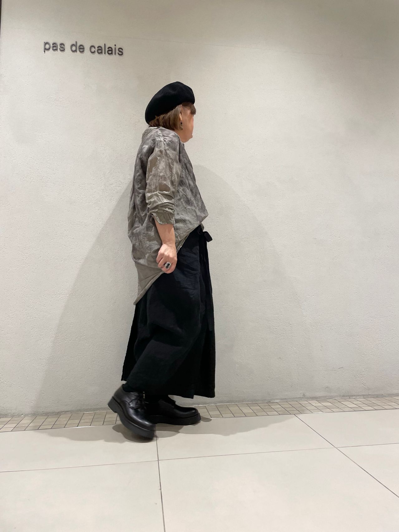 今回はリネンのラップスカートと合わせ、ブラウスの裾をインし、シックなスタイルに仕上げました。