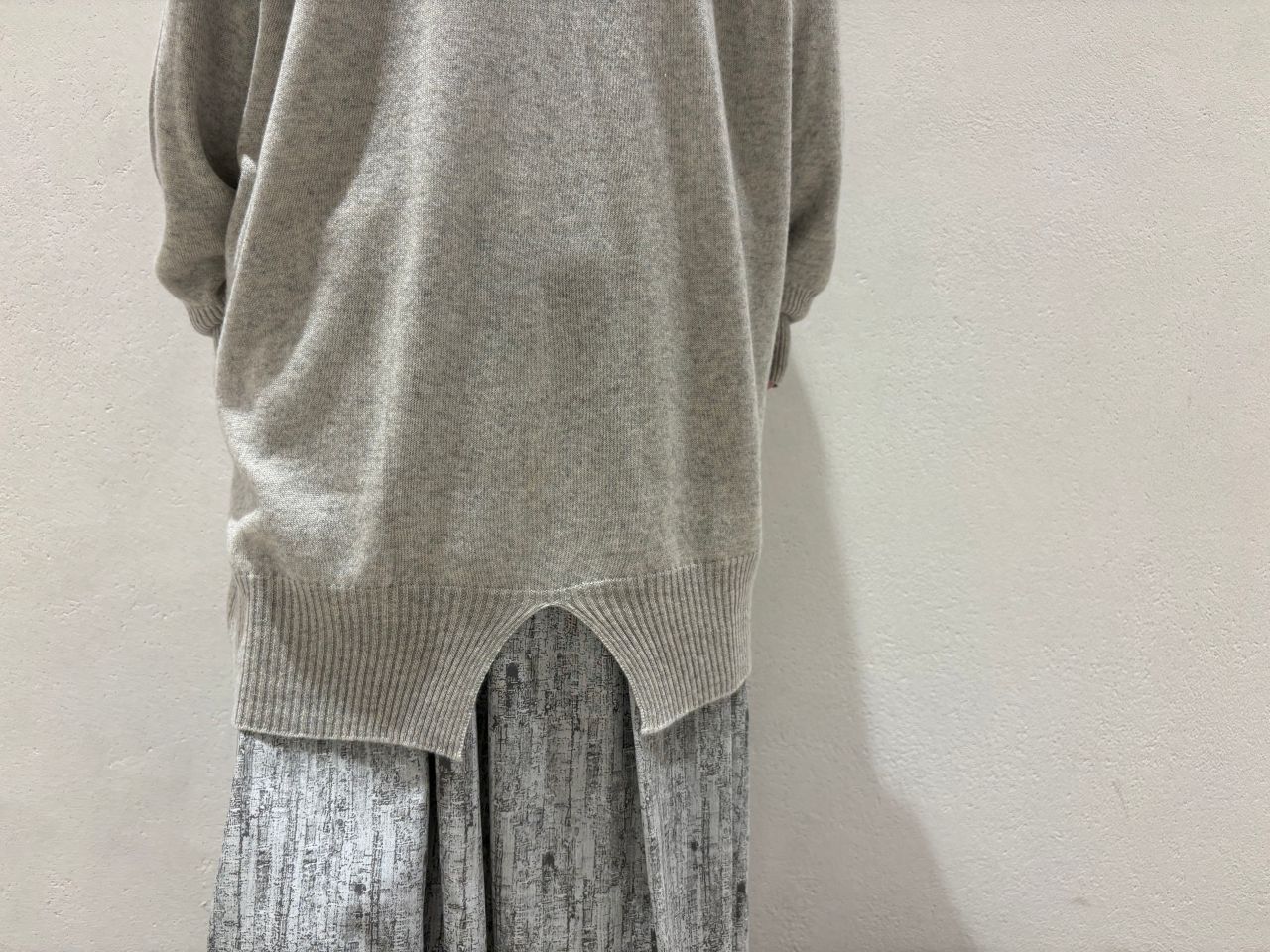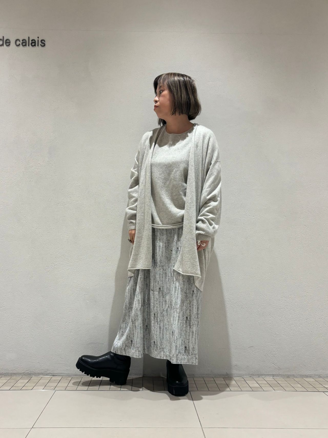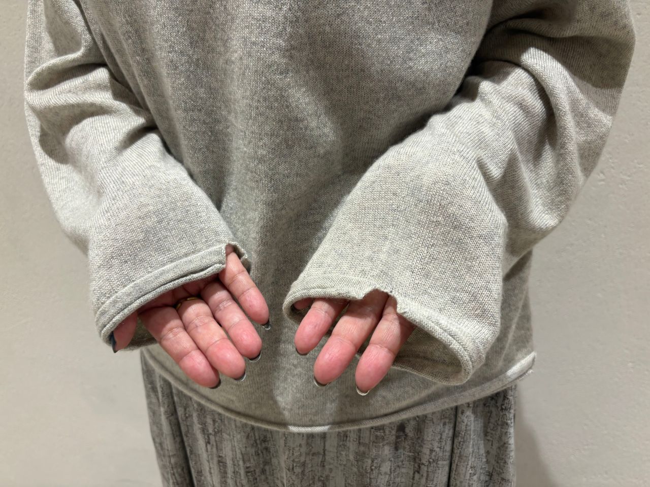 同じく新作のピュアカシミヤ・シルクのアンサンブルと合わせ、シンプルかつエレガントなコーディネートにしました。