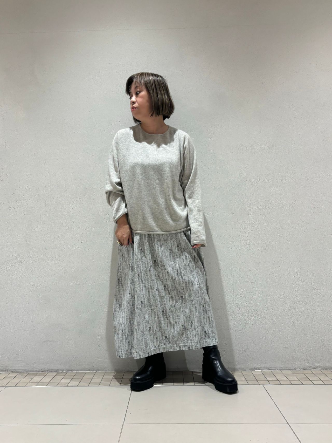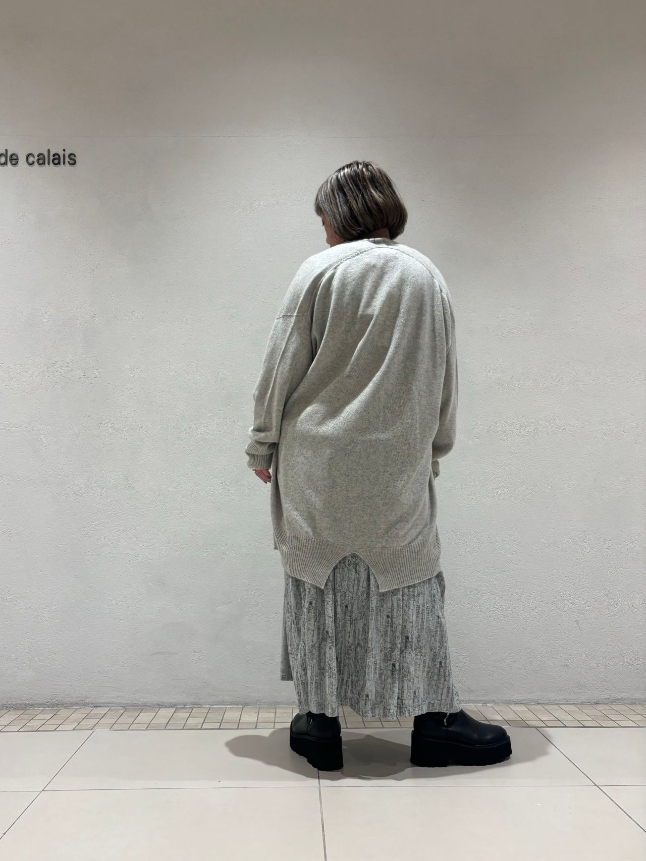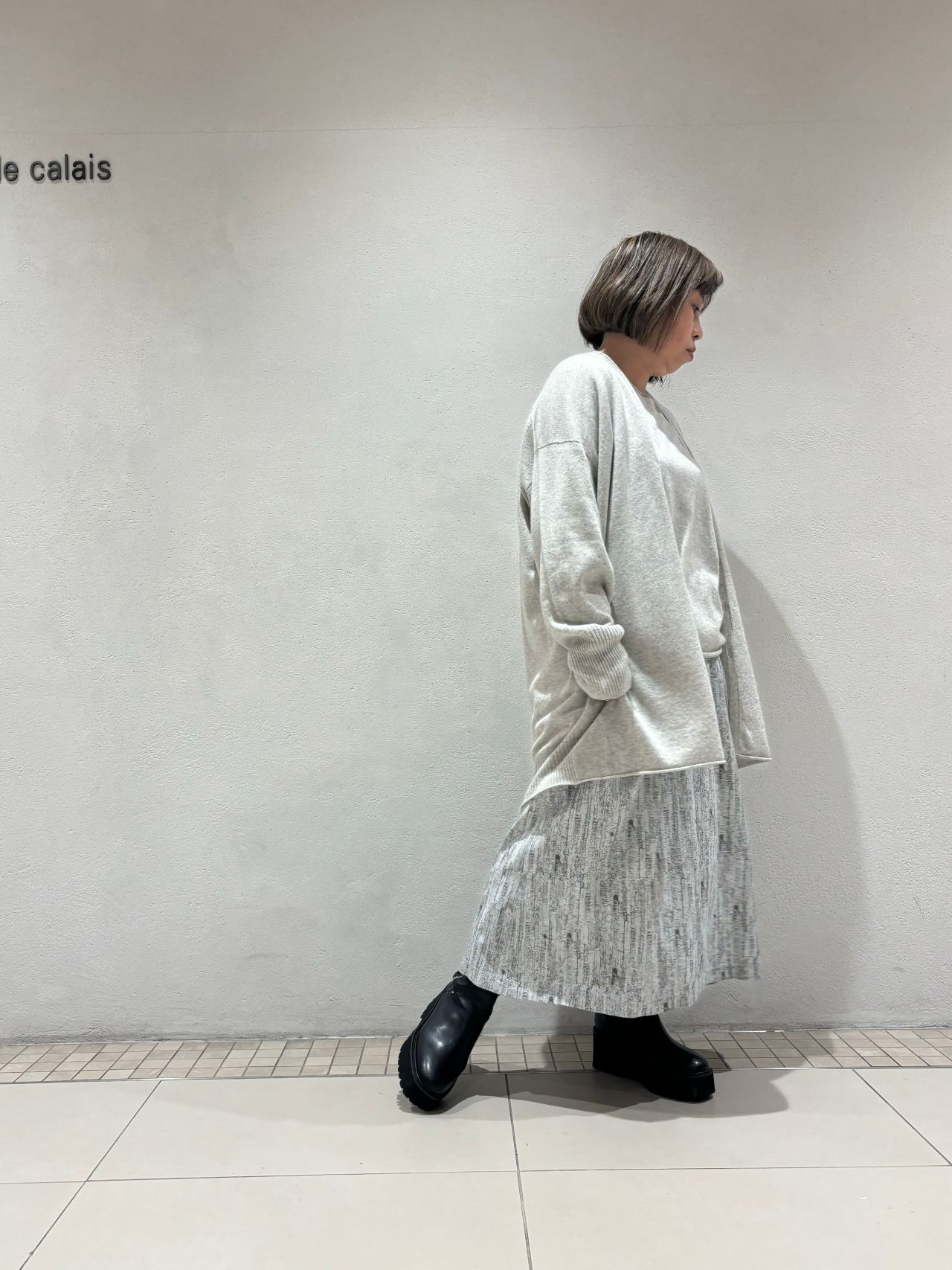 同じく新作のピュアカシミヤ・シルクのアンサンブルと合わせ、シンプルかつエレガントなコーディネートにしました。