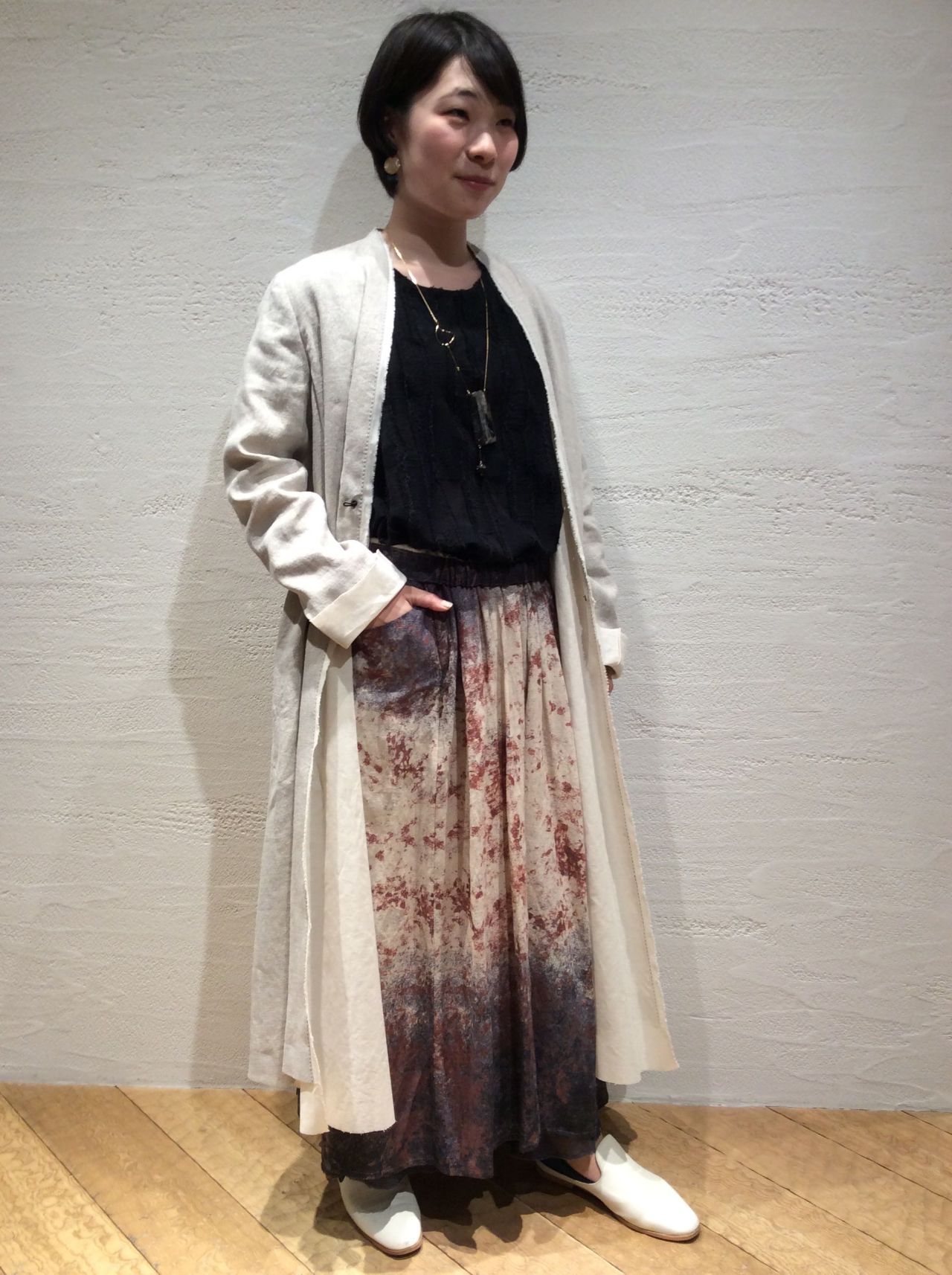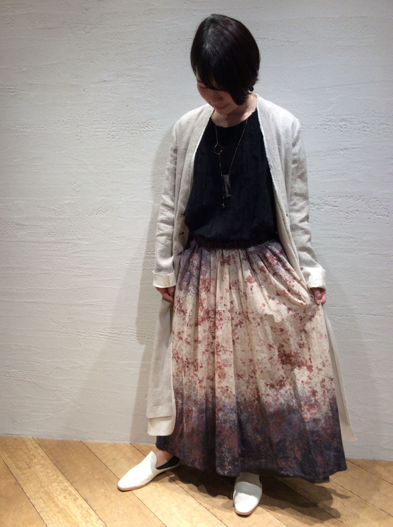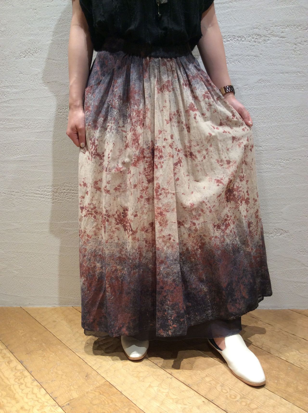 【新作】コットンリネンボイルグラデーションプリントスカート
