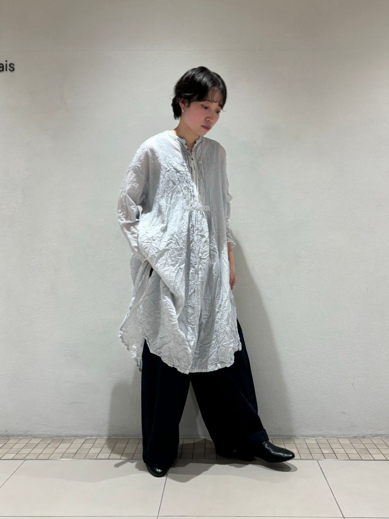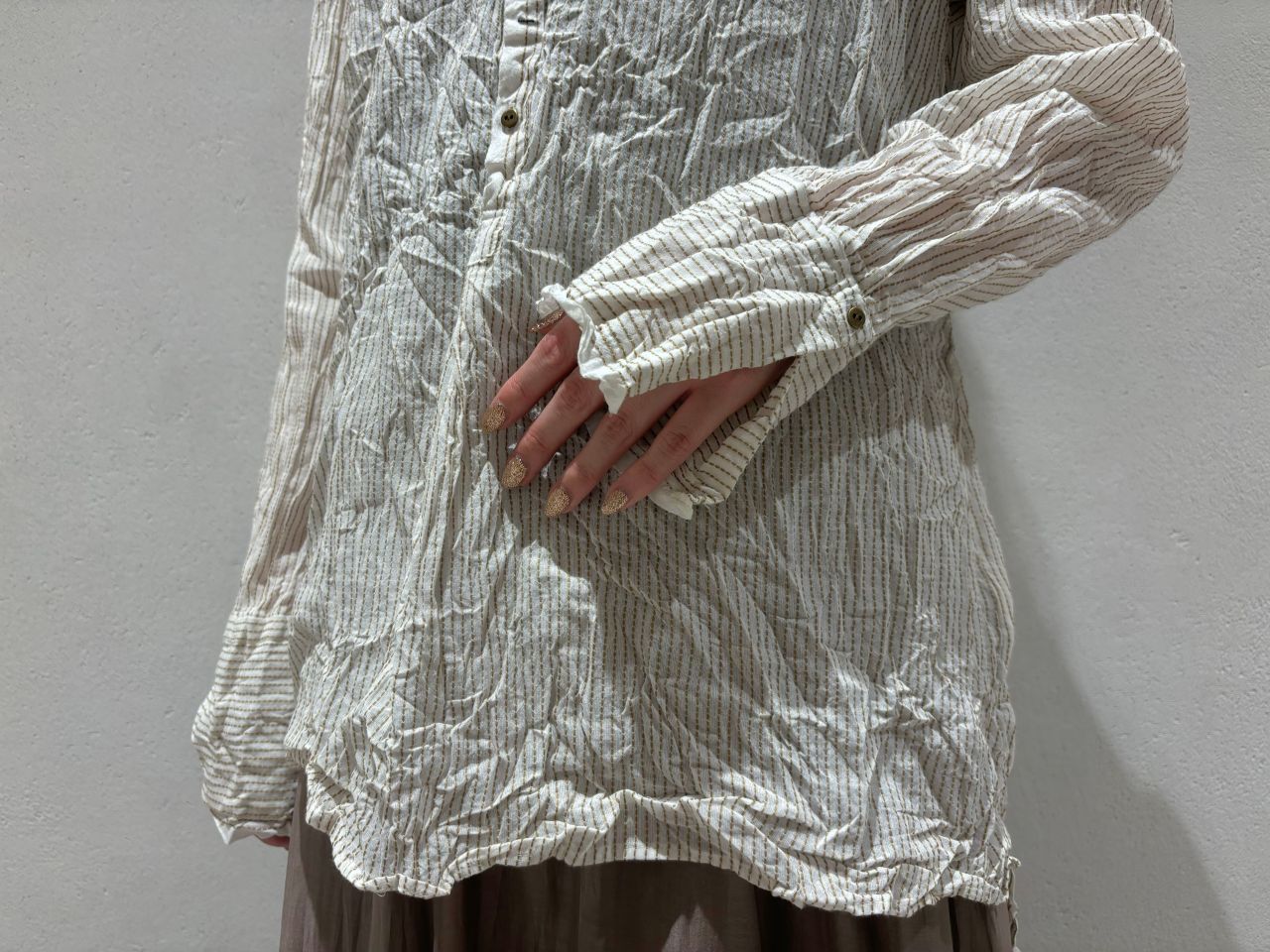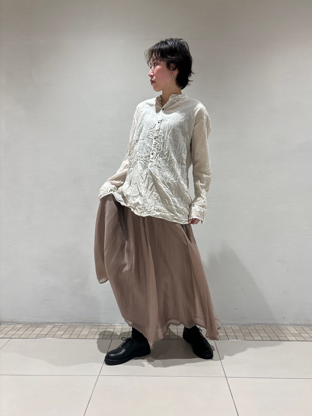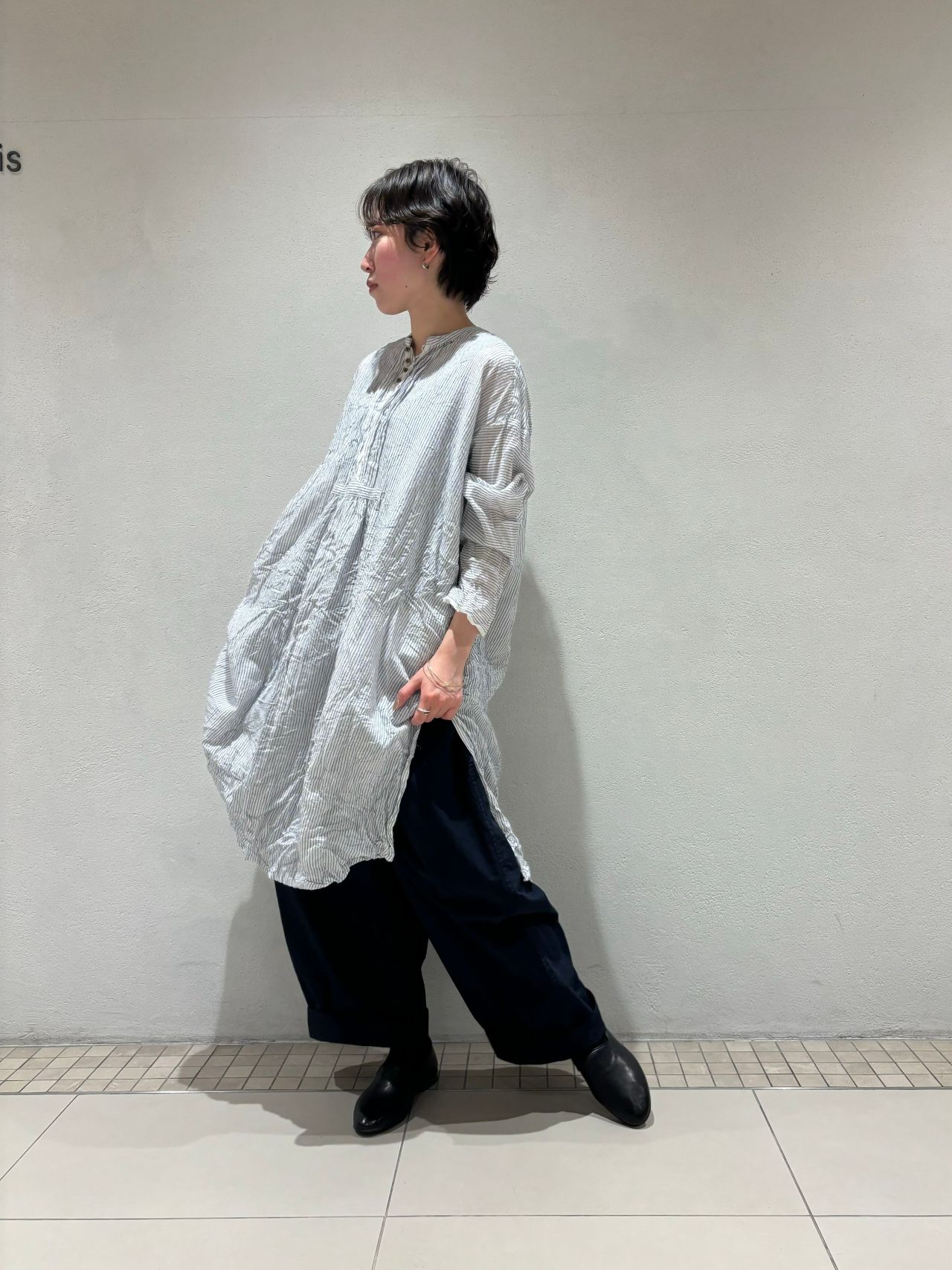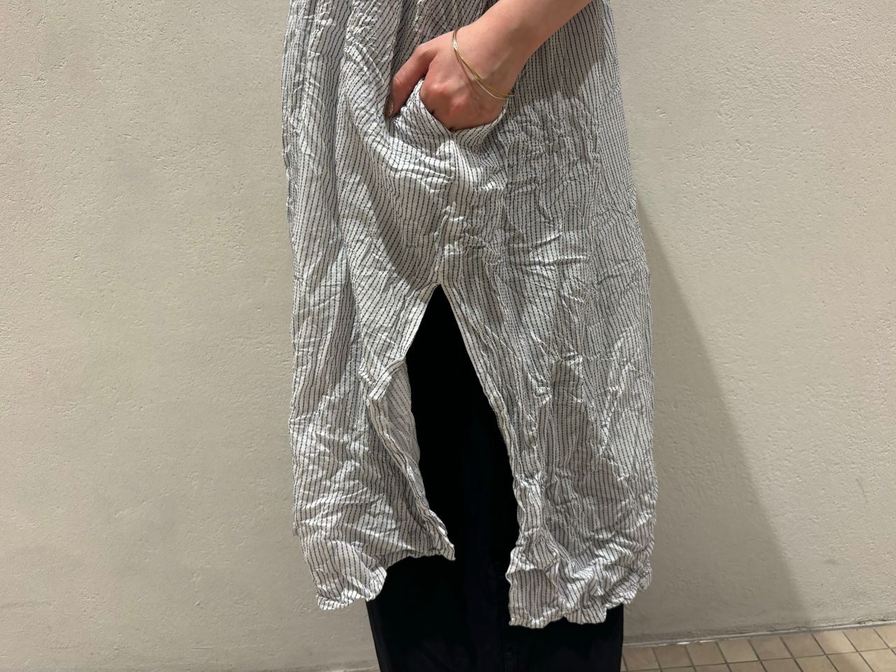 サイドにはスリットが入り、ロングシャツとしてワイドパンツやスカート合わせも◎